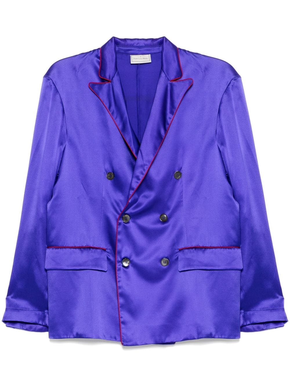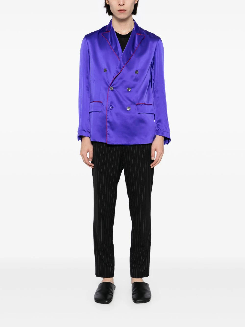 viola purple silk double-breasted button fastening peak lapels long sleeves buttoned cuffs two side flap pockets central rear vent straight hem When buying this unisex item, keep in mind that it is graded in standard men's sizing. This piece comes complete with a protective dust bag.