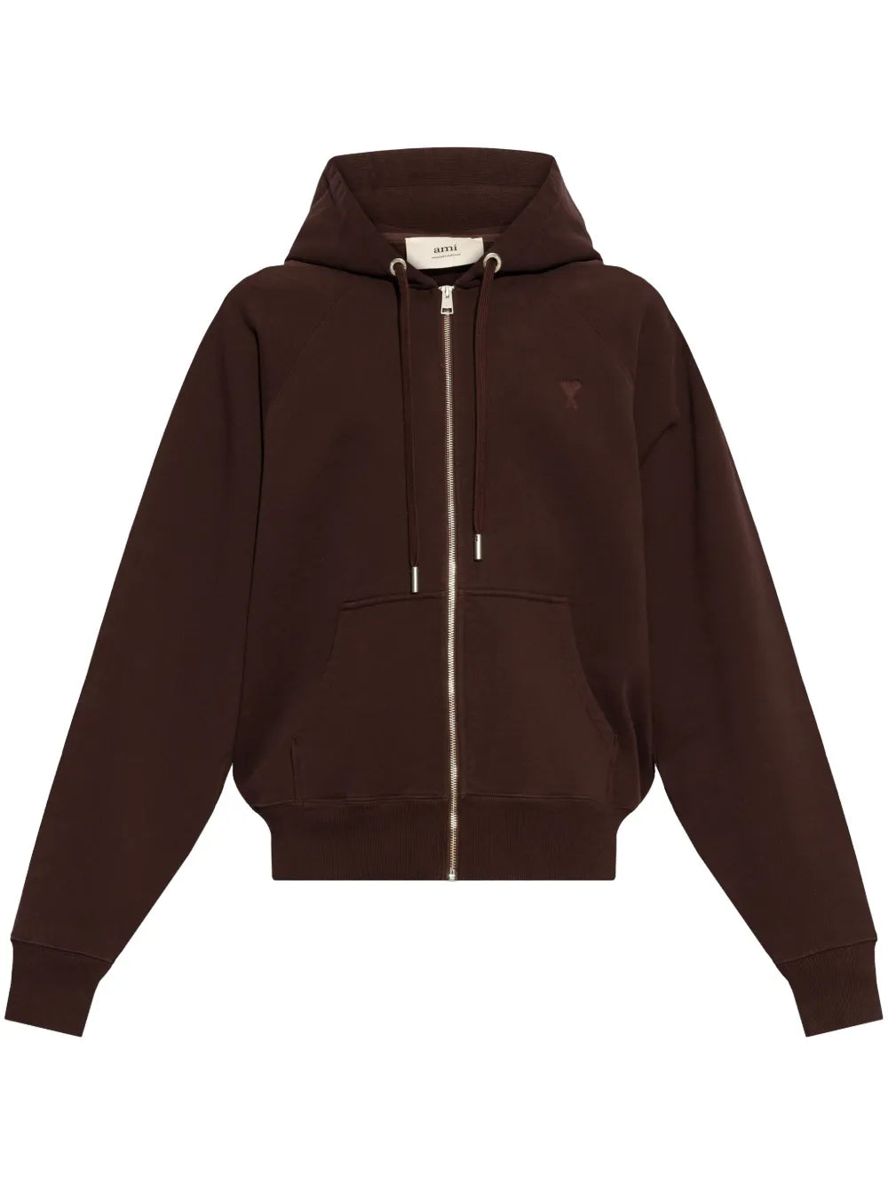 Expertly crafted with a dark red front zip fastening and a slouchy drawstring hood, this Ami De Coeur-Embroidered Hoodie delivers both style and function. The long sleeves and two front pouch pockets add practicality, making it the perfect choice for any casual occasion.