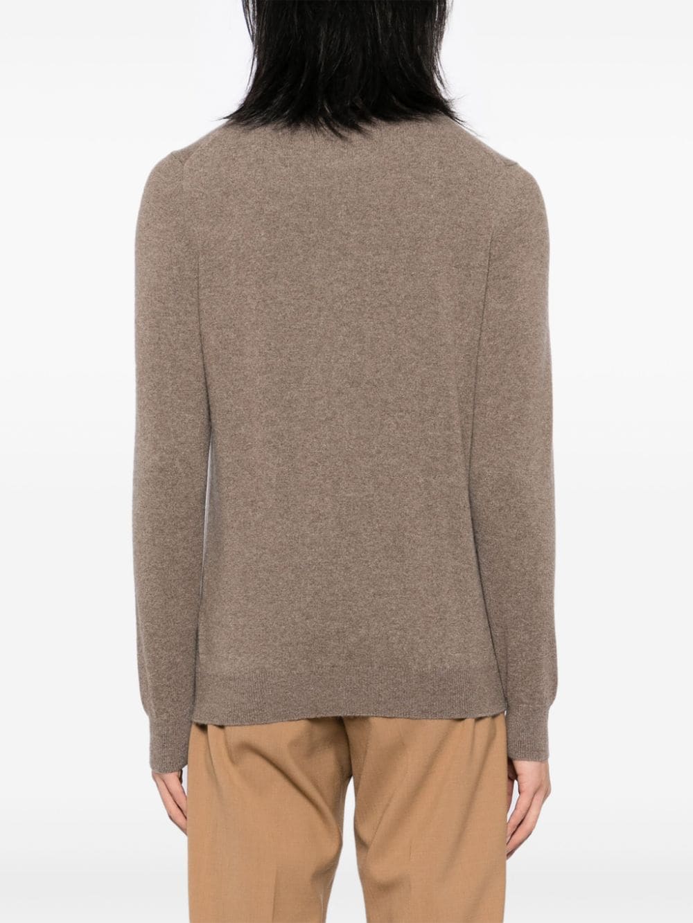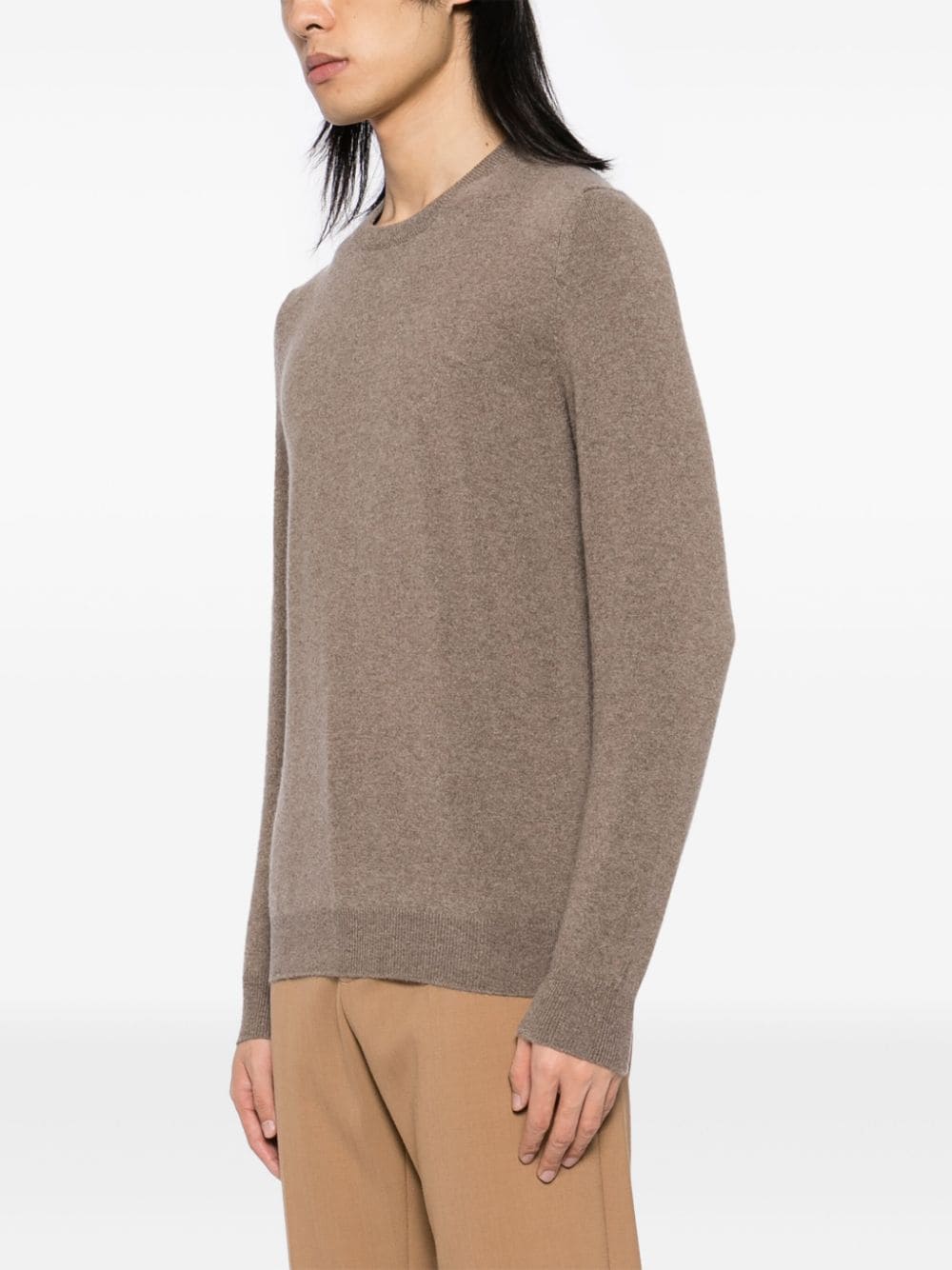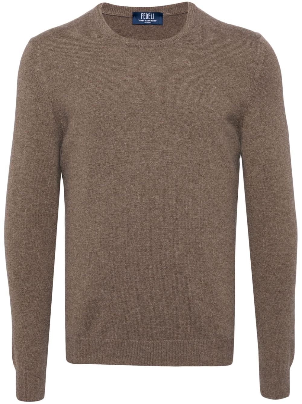 cedar brown cashmere knitted construction mélange effect crew neck long sleeves ribbed cuffs and hem