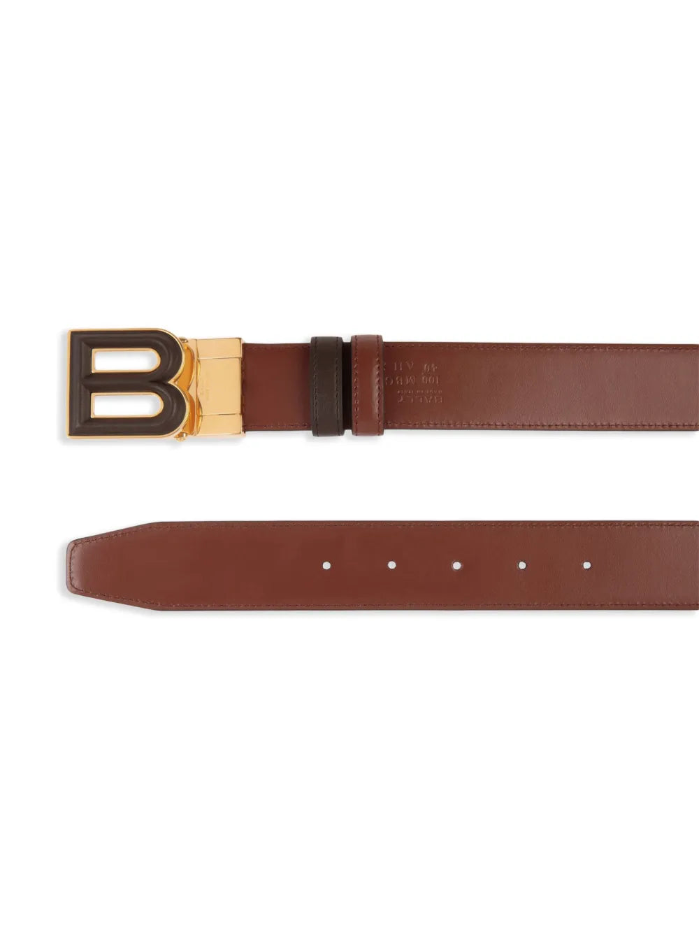 Our B Bold Reversible Belt offers a versatile and stylish addition to your wardrobe. Made with a chocolate brown logo-buckle fastening, this belt is easily adjustable with pre-drilled holes for the perfect fit. Its reversible design adds functionality and convenience, making it a must-have accessory.