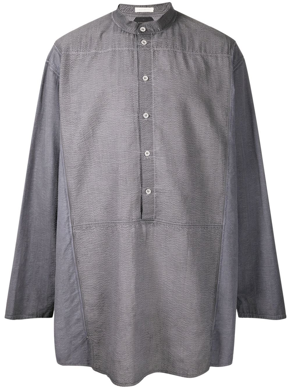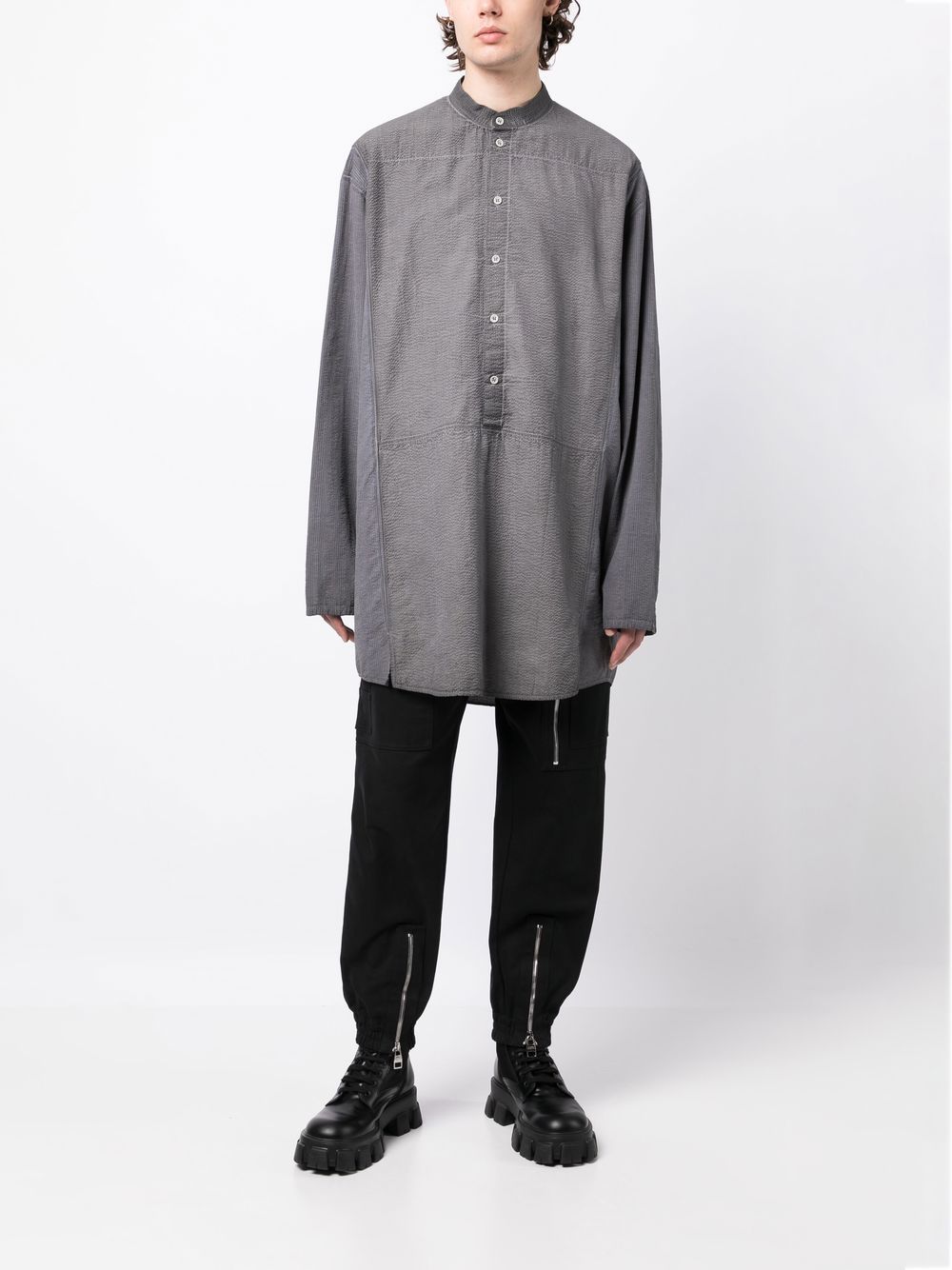 band-collar cotton shirt from NICOLAS ANDREAS TARALIS featuring light grey, cotton, band collar, front button placket, long sleeves and curved hem.