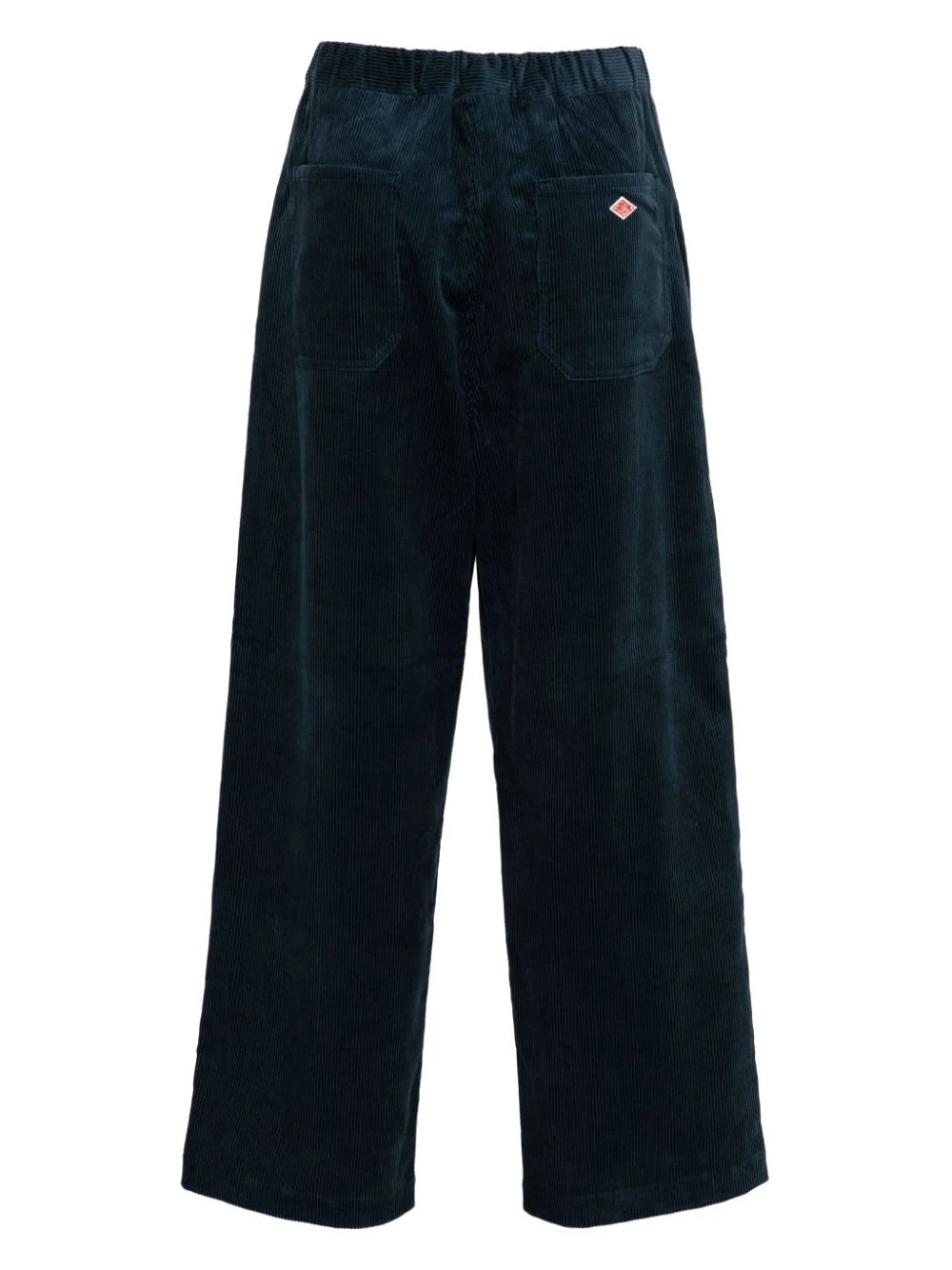 blue cotton corduroy straight leg elasticated waistband belt loops belted waist two rear patch pockets