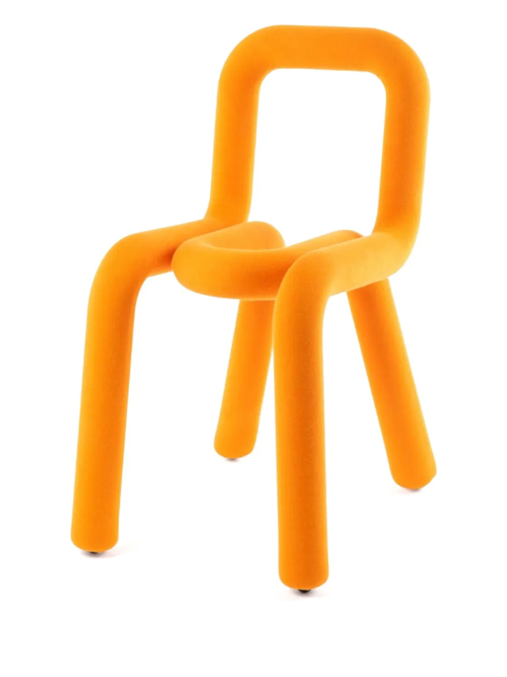 Introducing the Bold Chair - the perfect addition to any modern interior. With its unique orange curve-edge body and textured finish, this chair brings a pop of color and style to any room. The sturdy metal feet provide stability and durability. Check out the Size & Fit tab for precise dimensions.