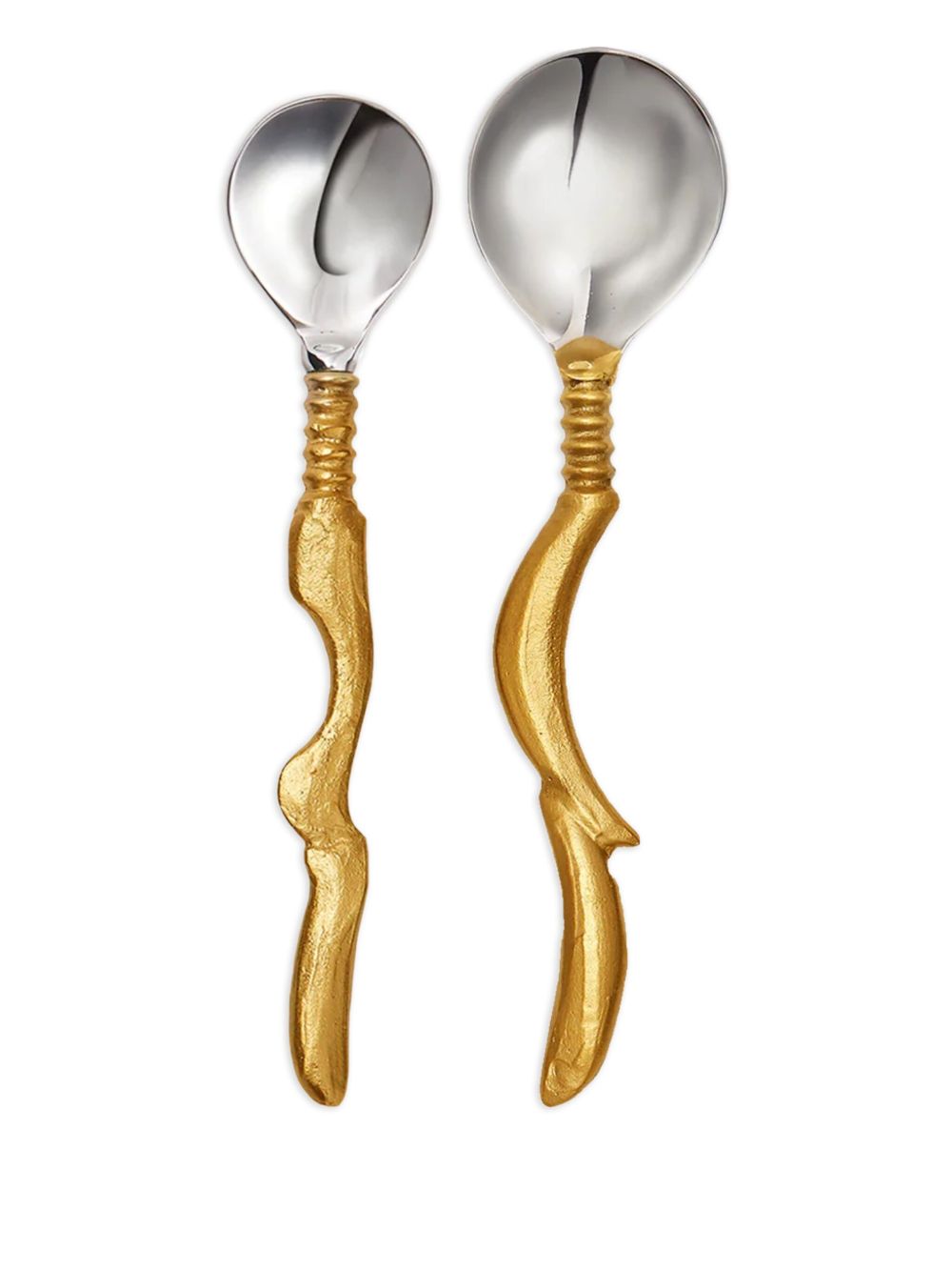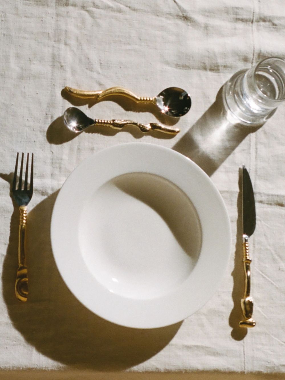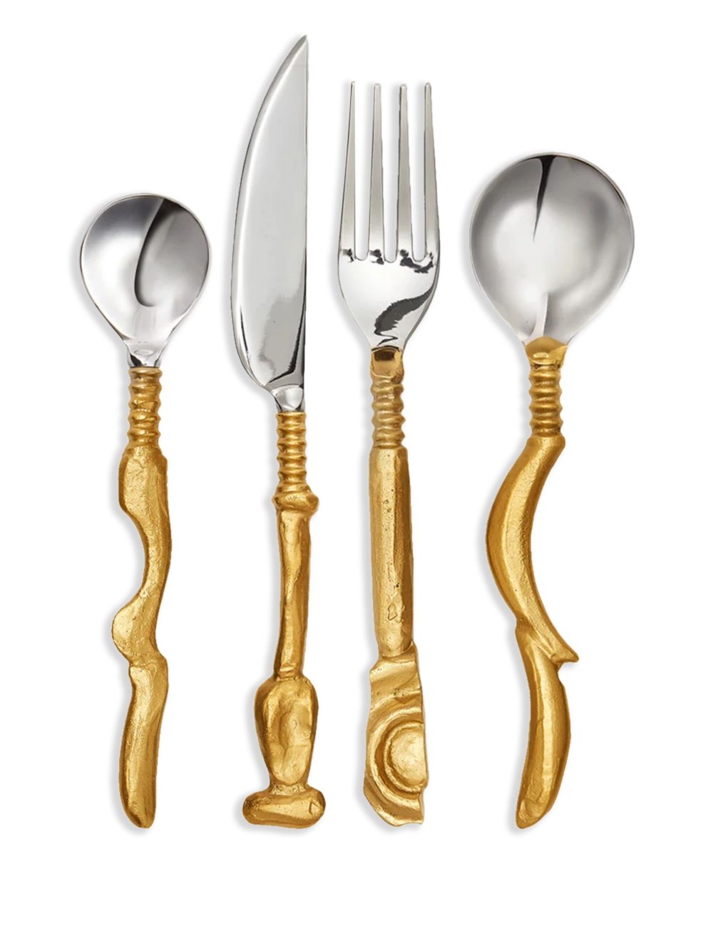 This set of four Brushed Cutlery features sculpted gold-tone handles, adding a touch of elegance to any dining experience. Crafted with precision, this cutlery set is perfect for special occasions or everyday use. With their sleek design, these utensils will enhance your dining table while providing durable functionality.