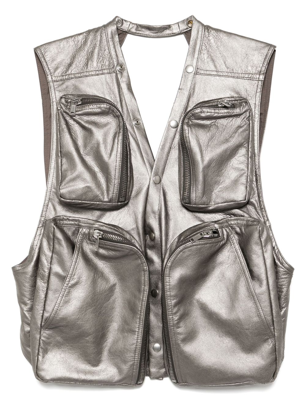Stay stylish and functional with our Cargo Vest Jacket. This medium grey jacket features front button and rear button fastenings, along with four zip-fastening pockets for secure storage. Perfect for any outdoor activity, this jacket offers both fashion and practicality.
