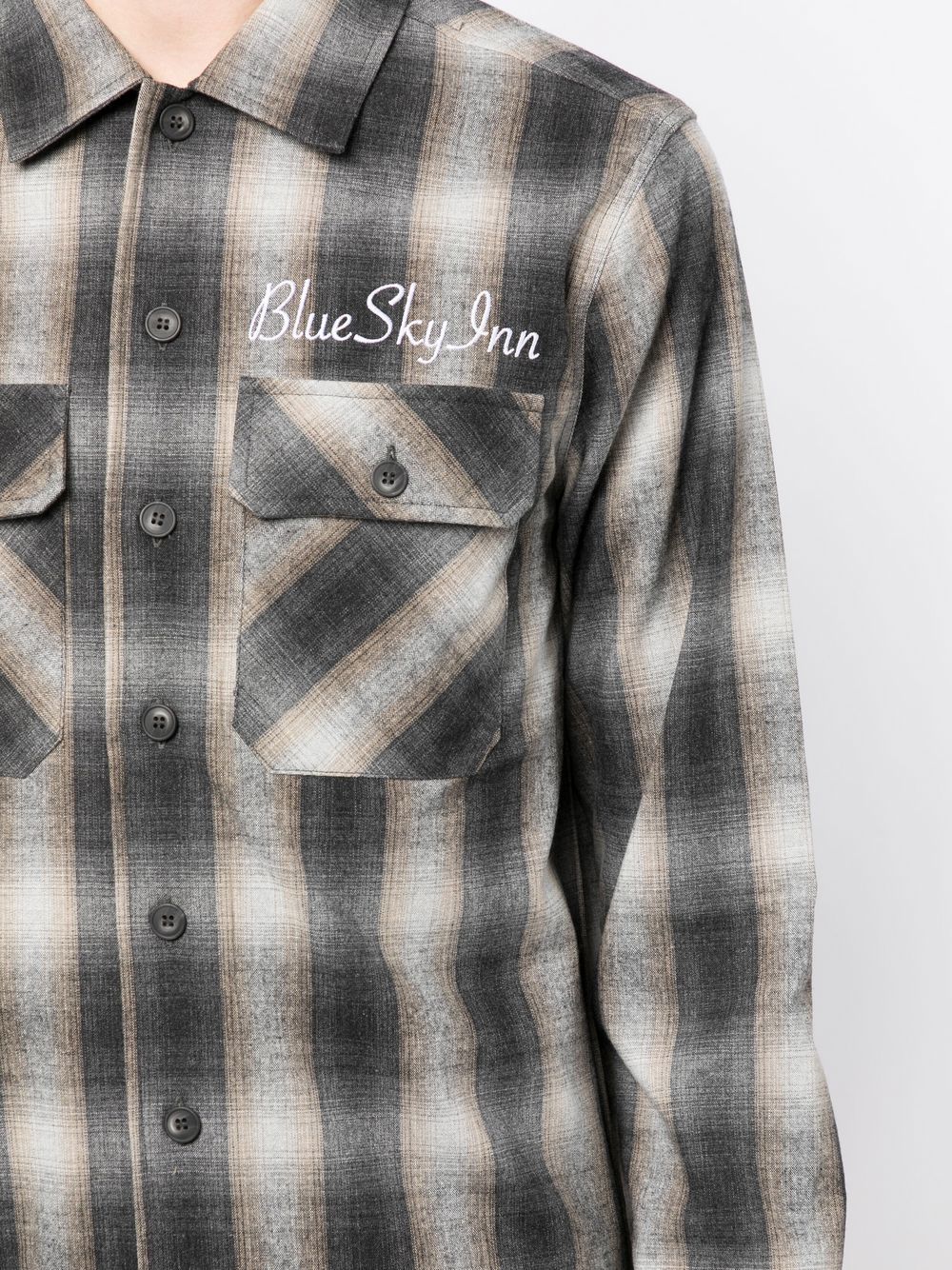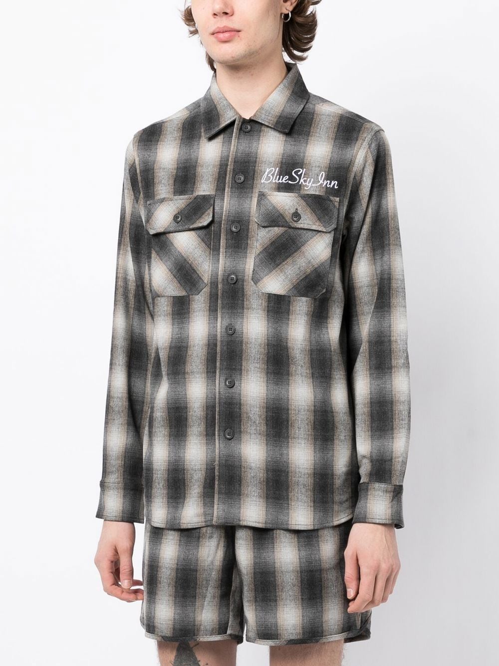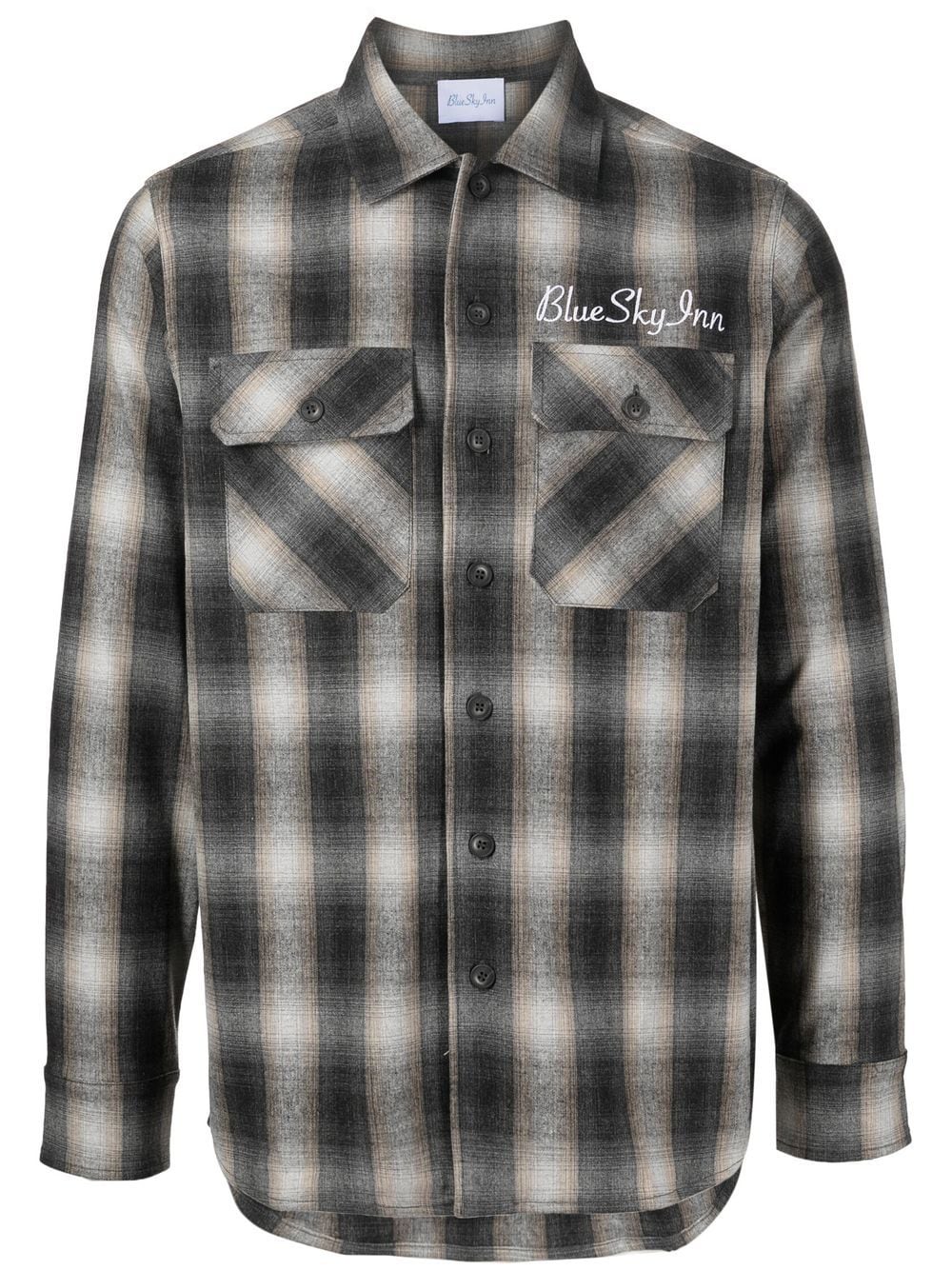 check-pattern long-sleeve shirt from BLUE SKY INN featuring grey, wool blend, check pattern, embroidered logo at the chest, classic collar, front button fastening, long sleeves and two button-fastening chest pockets.