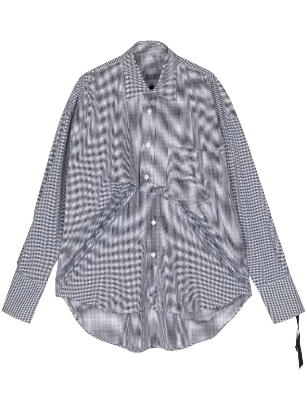 black/white cotton check pattern straight-point collar front button fastening long sleeves draped design curved hem