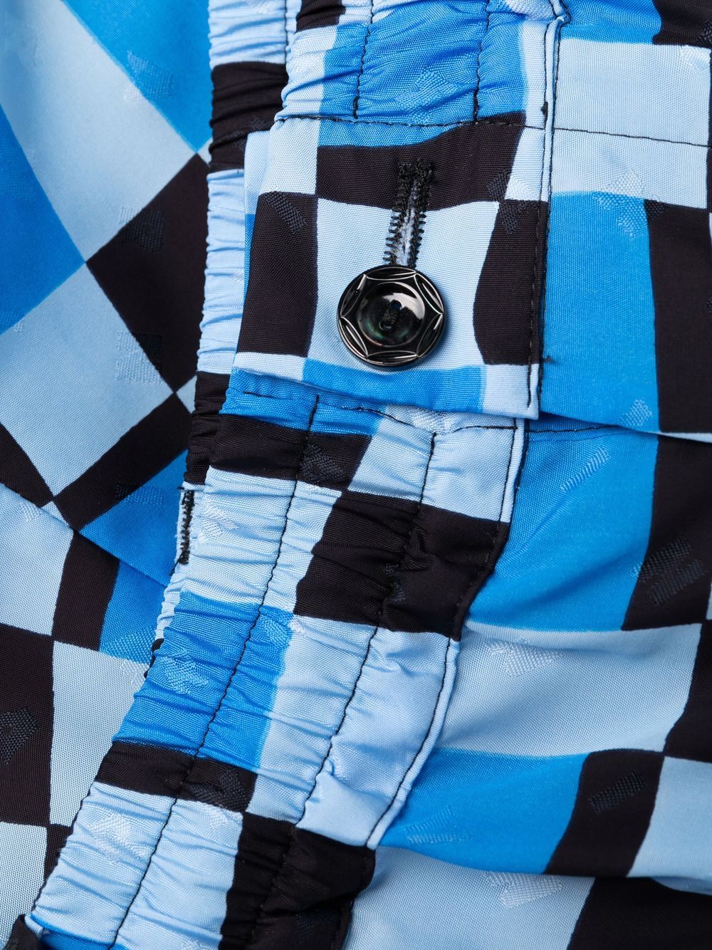 Blue cotton checked knee-length shorts from MARNI featuring bold check print, knee-length, elasticated waistband and belt loops.