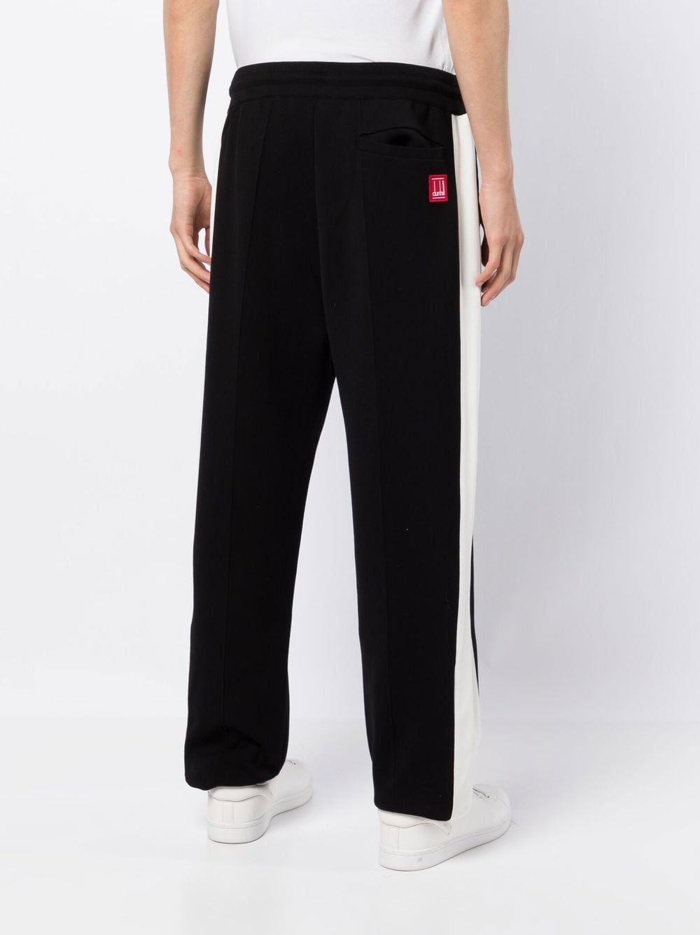 contarsting side-stripe detail trousers from DUNHILL featuring side stripe detailing, logo patch to the rear, elasticated waistband, two side inset pockets, rear welt pocket, jet black/white and cotton.