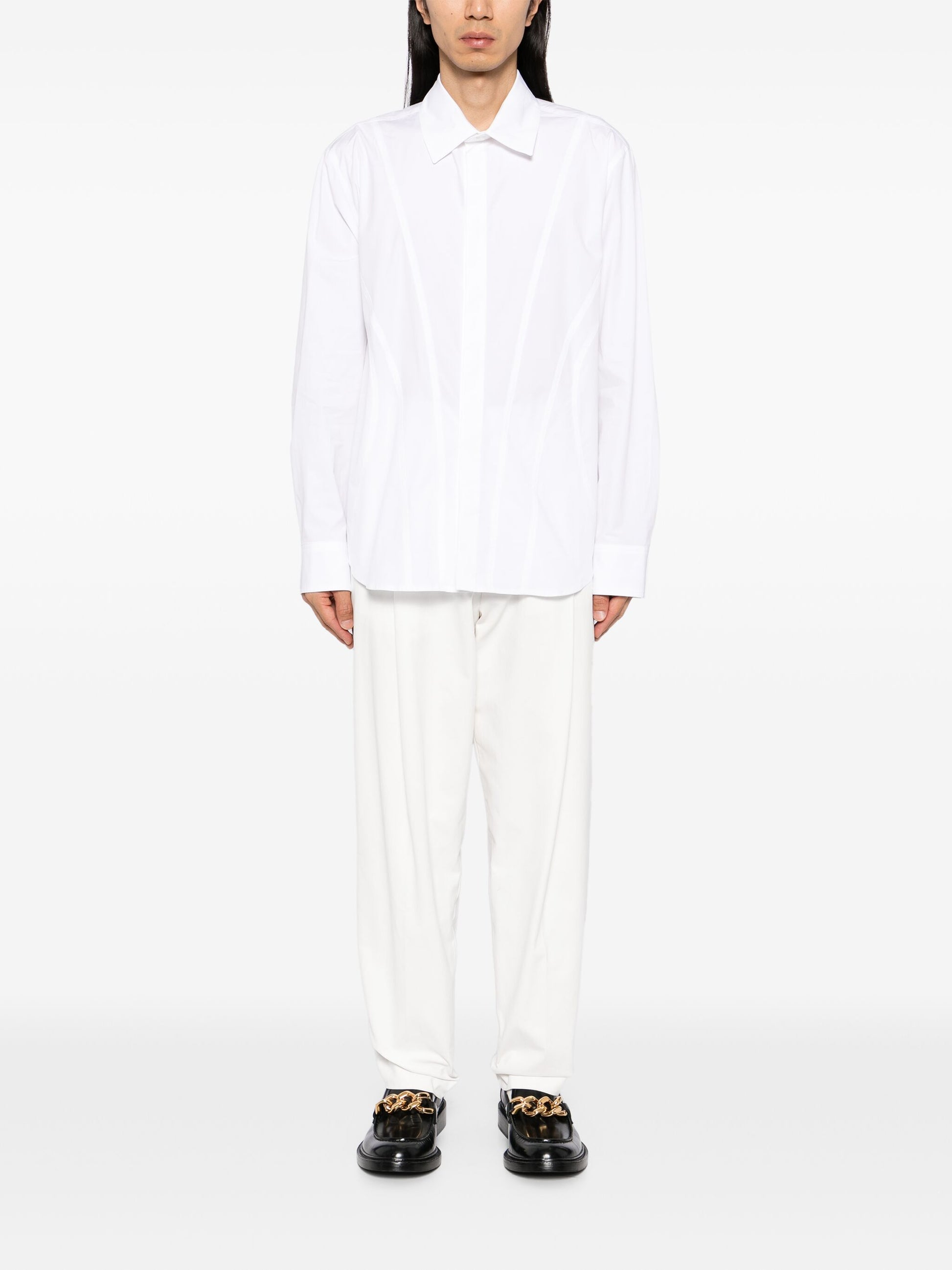 This stylish Corset Details Shirt features a classic collar and front button fastening for a timeless look. Made with a blend of white cotton poplin, it boasts a comfortable texture and tonal stitching. The long sleeves and buttoned cuffs add extra charm, while the curved hem adds a flattering touch. Elevate your wardrobe with this must-have piece.