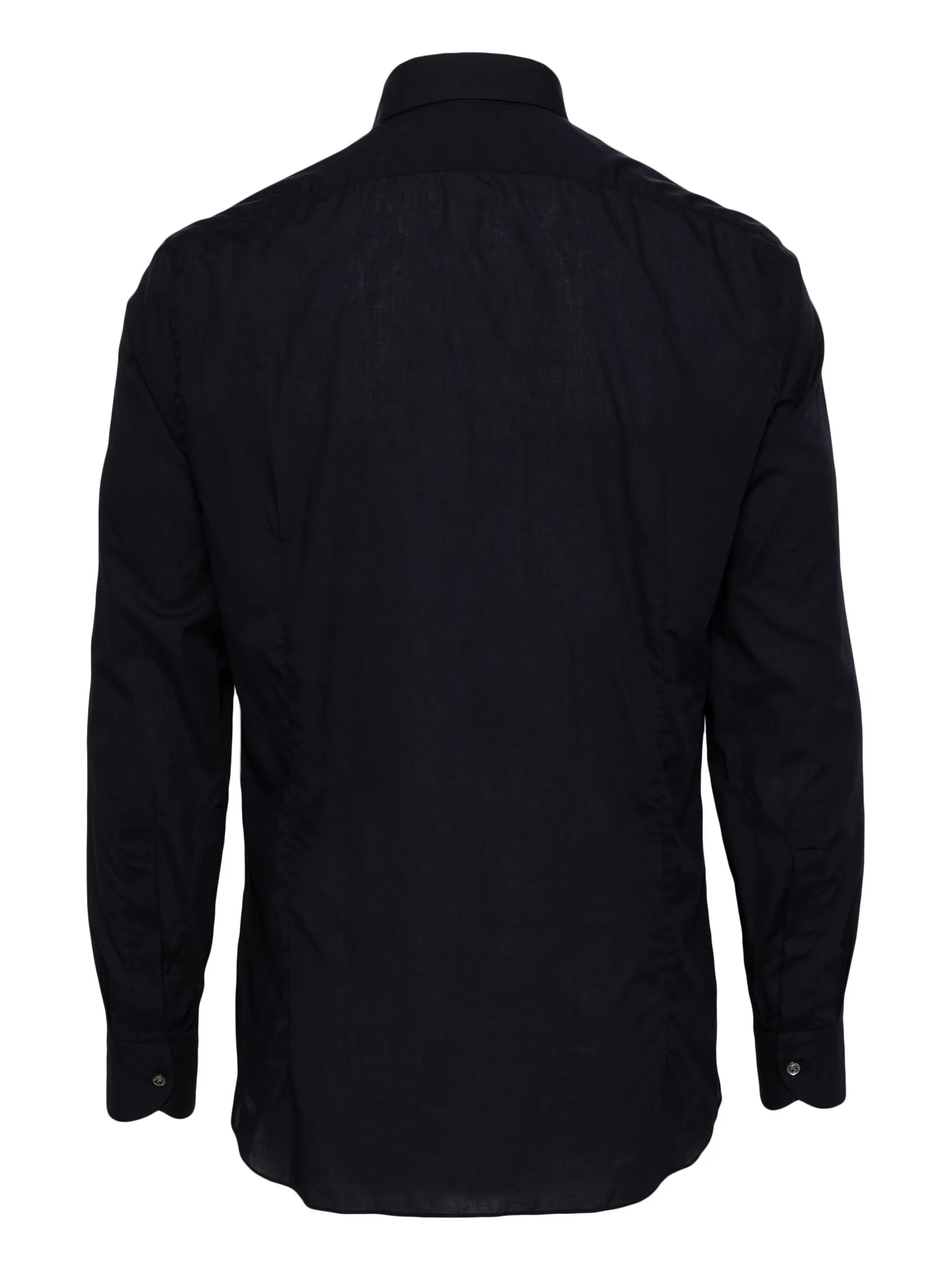 navy blue cotton front button fastening long sleeves buttoned cuffs curved hem