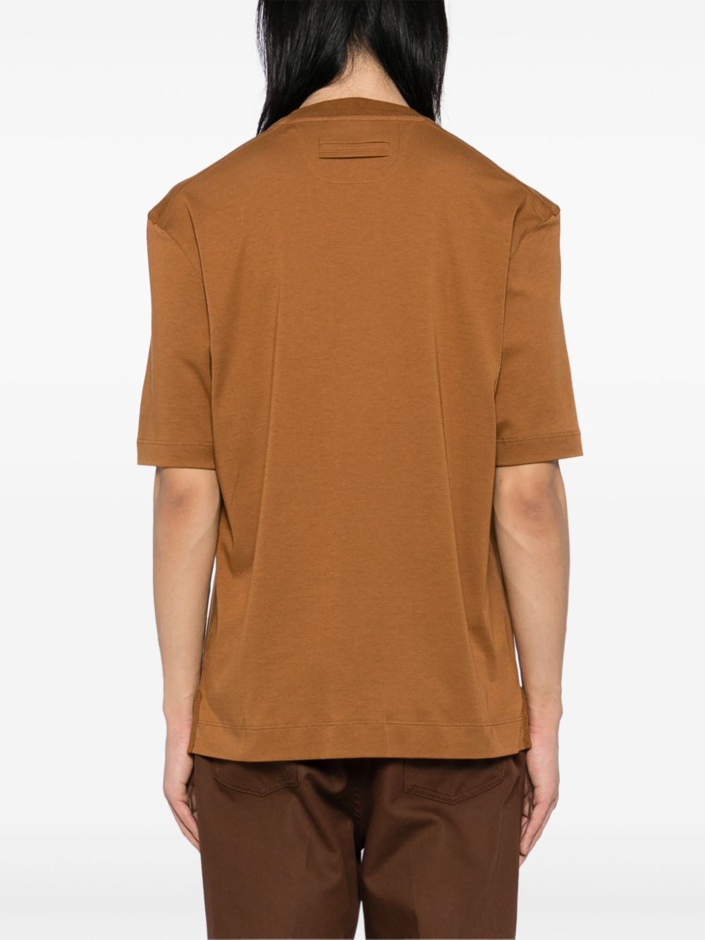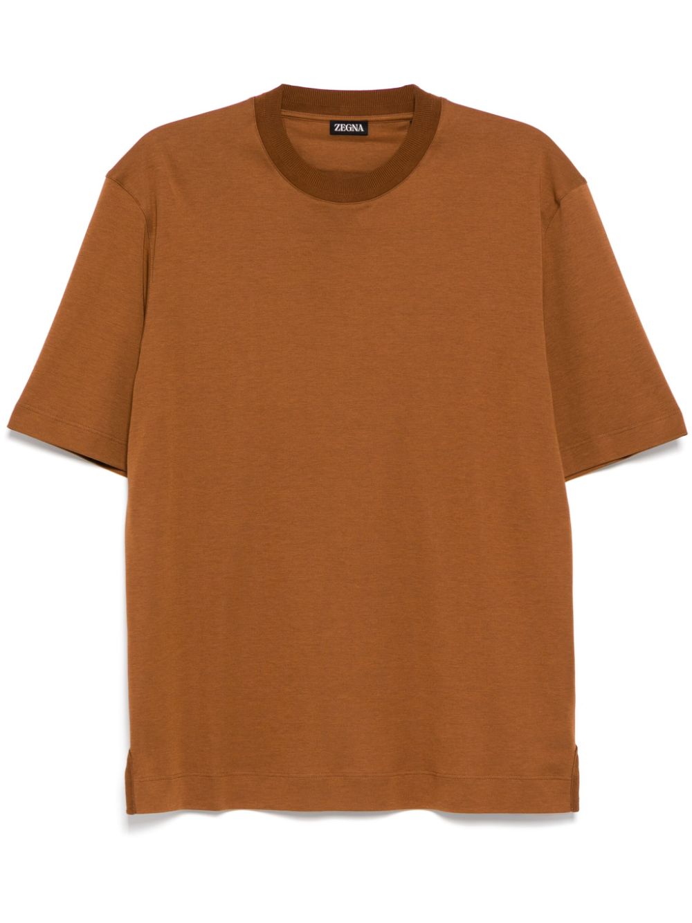 This brown crew-neck t-shirt features short sleeves and a straight hem, giving it a classic and versatile look. Perfect for everyday wear, it offers comfort and style in equal measure. Made with high-quality materials, this shirt is sure to become a staple in your wardrobe.