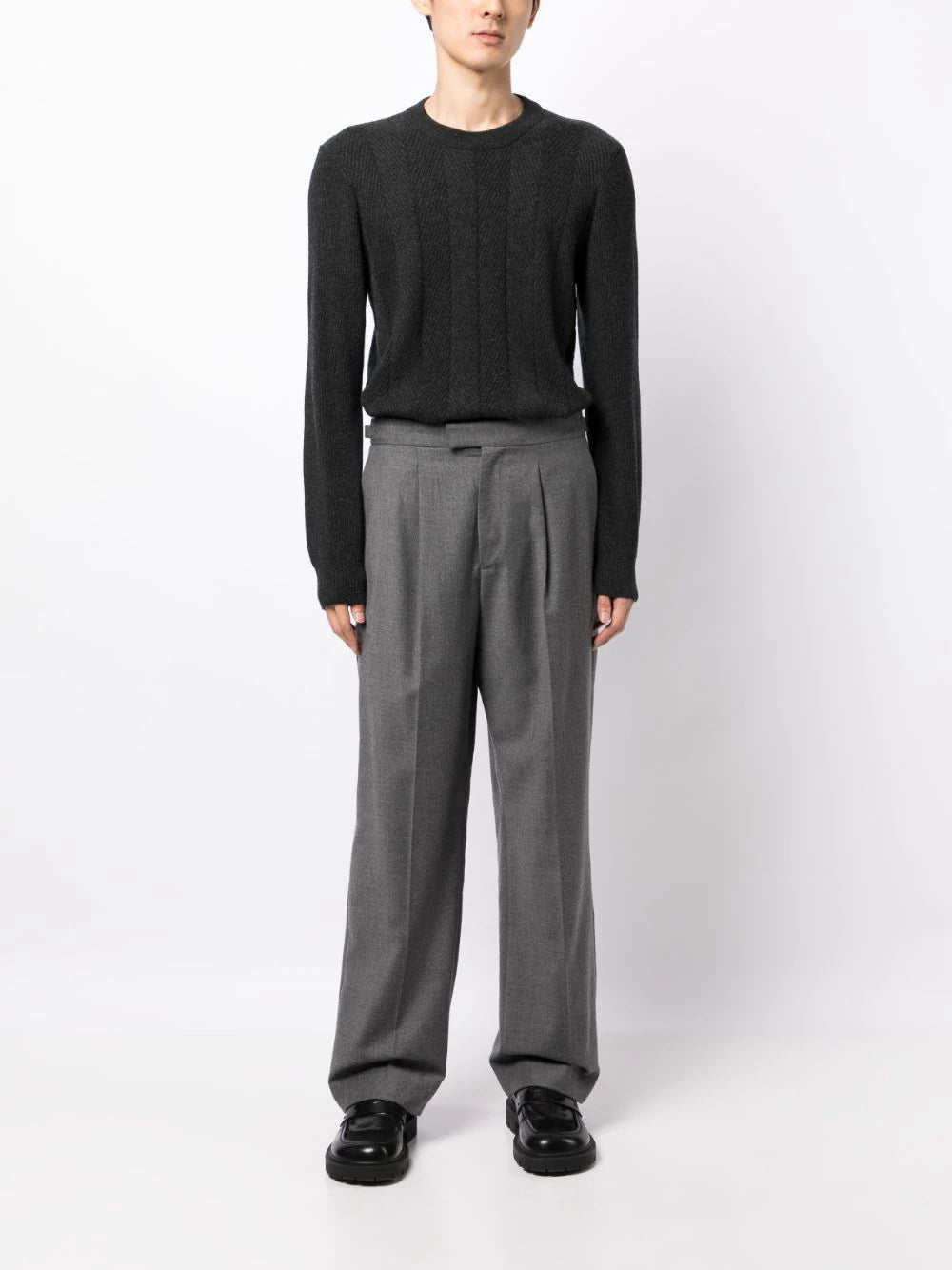 crew-neck wool jumper from DUNHILL featuring charcoal grey, wool, knitted construction, crew neck, long sleeves and straight hem.