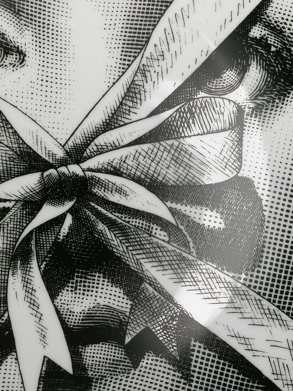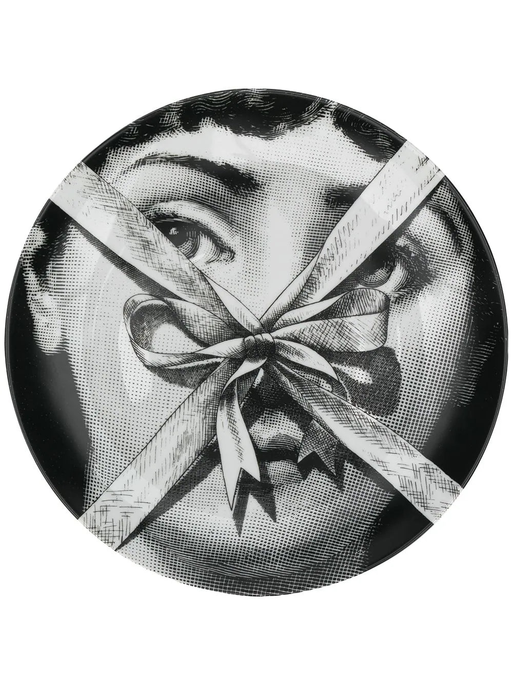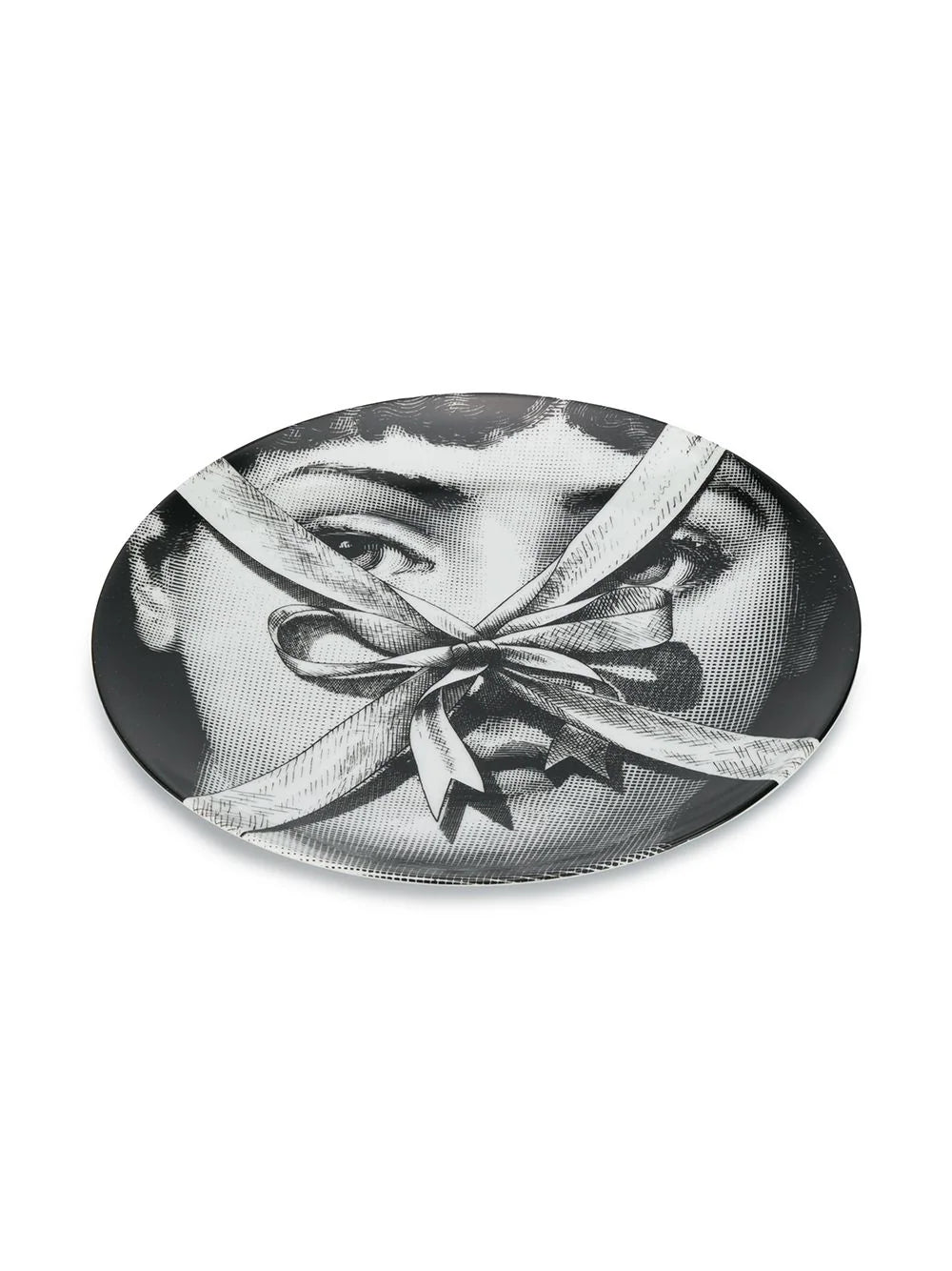 Black and tonal grey ceramic decorative homewear plate from Fornasetti.