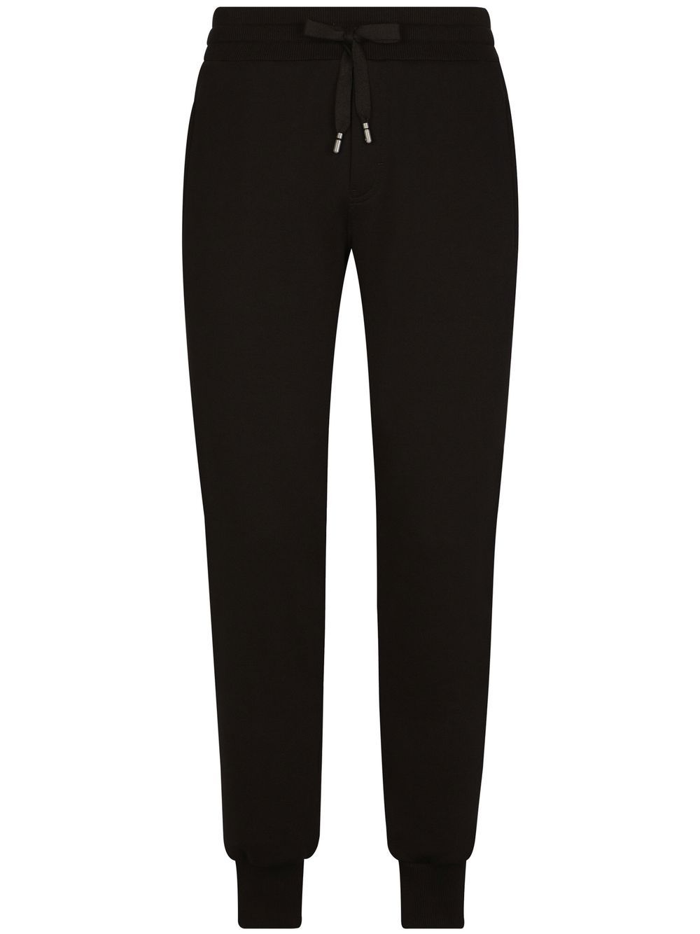 DG Essentials jersey track pants from DOLCE & GABBANA featuring black/white, cotton, jersey knit, embroidered logo to the rear, elasticated drawstring waistband, elasticated ankles, two side zip-fastening pockets and rear zip-fastening pocket.