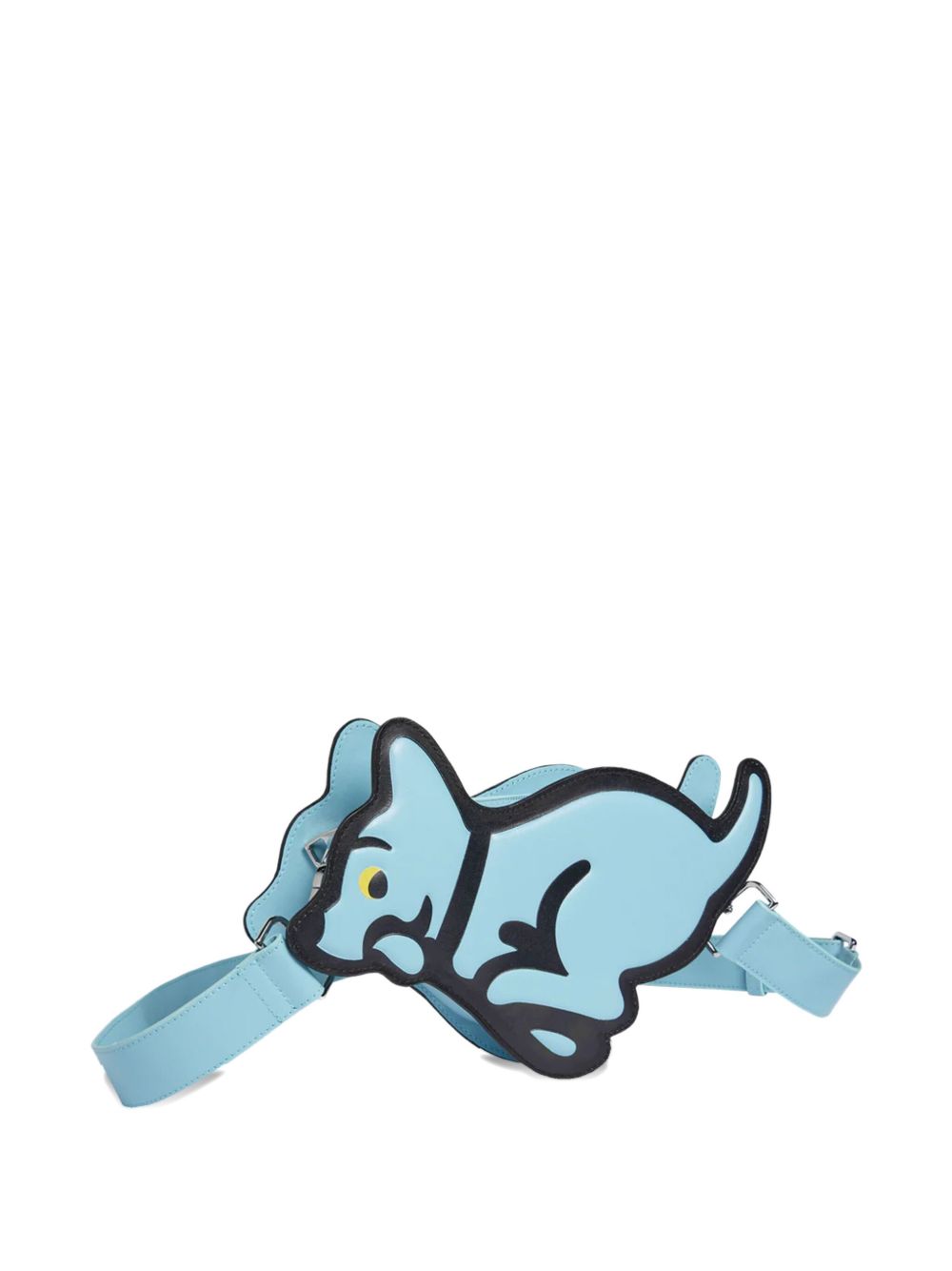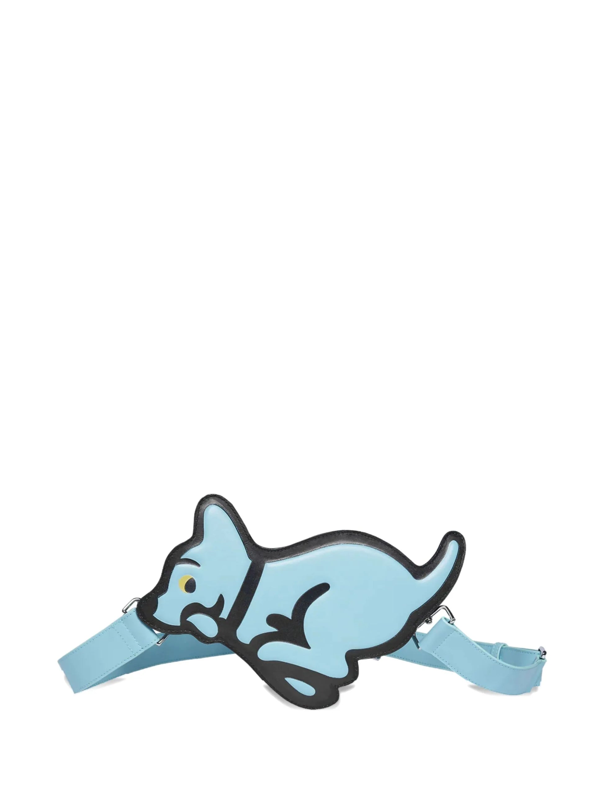 This light blue shoulder bag is crafted from smooth leather, shaped into a distinctive dog silhouette for a playful yet refined accessory. It features an adjustable strap with buckle fastening, allowing for a customized and secure fit. Combining unique design with quality materials, this bag offers expert craftsmanship ideal for adding character to your ensemble.