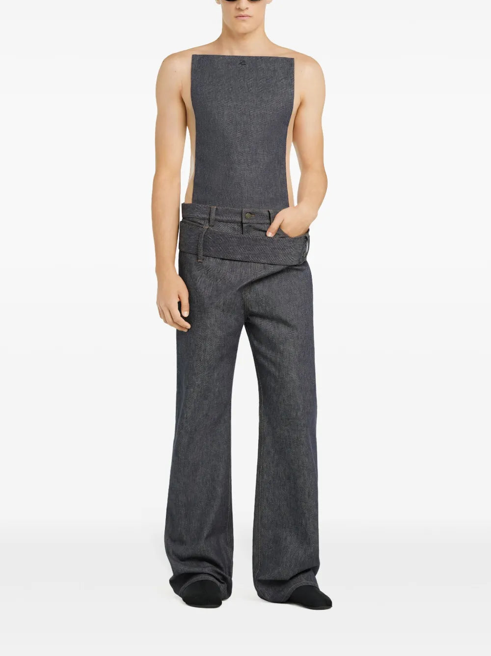 These Double Belted Jeans feature a heather grey color, concealed fly and button fastening, and belt loops for a secure fit. With two rear patch pockets and an embroidered logo, these jeans are both stylish and functional. The perfect addition to any wardrobe for a polished and put-together look.