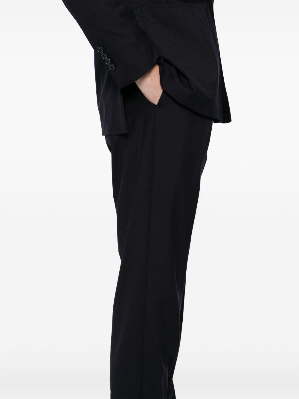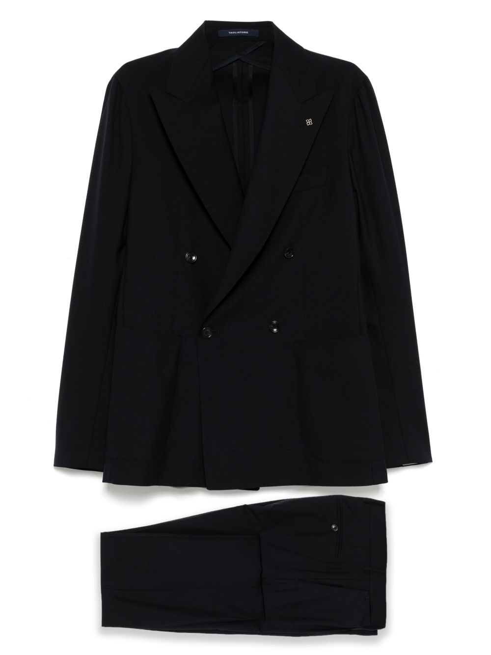 This navy blue double-breasted suit is a timeless classic for any professional setting. The jacket features a double-breasted button fastening and two front patch pockets for added functionality. The pants have a front button and zip fastening, and a rear welt pocket. Elevate your style with this sophisticated suit.