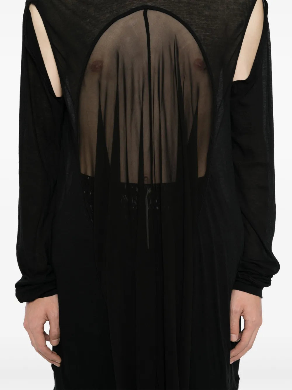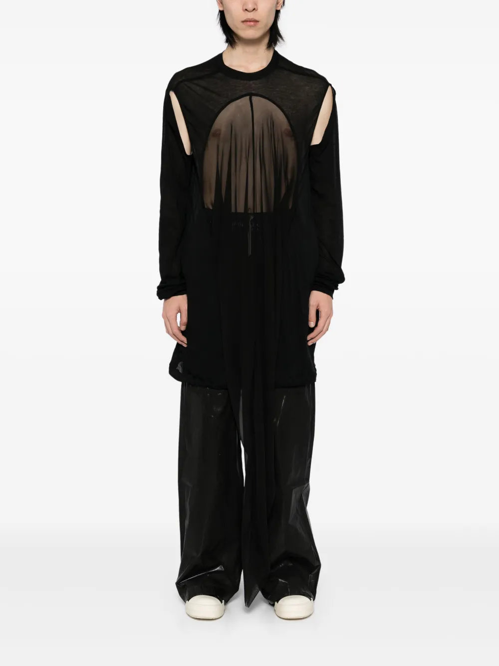 Introducing the Drain T-Shirt, designed for maximum comfort and style. This black crew neck t-shirt features cut-out detailing and a semi-sheer construction, perfect for any casual or athletic look. Stay trendy and cool with this must-have addition to your wardrobe.