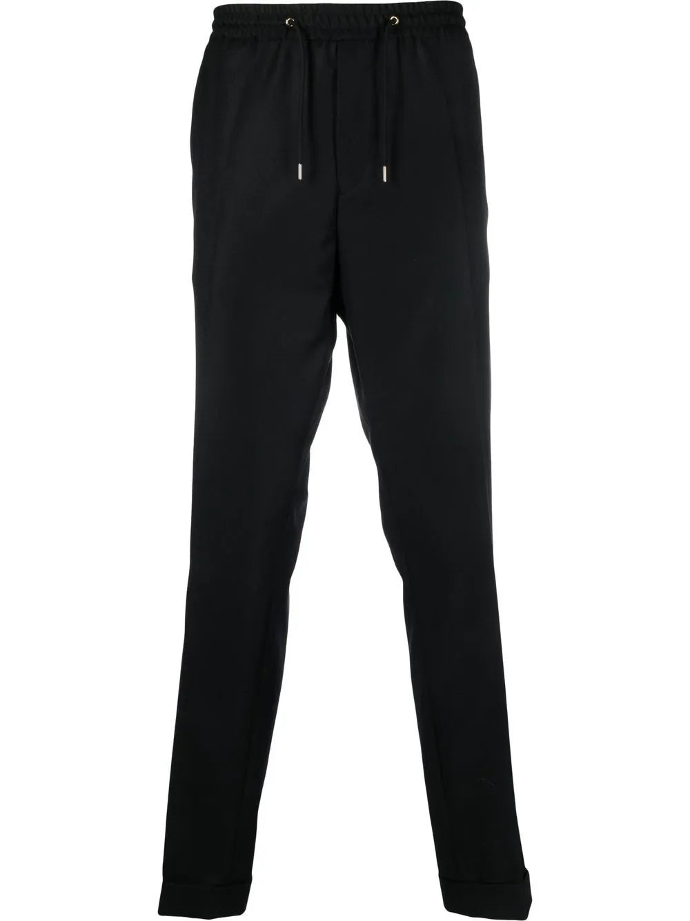 drawstring tapered trousers from Paul Smith featuring black, wool-cashmere blend, elasticated drawstring waistband, tapered leg, two side slit pockets, two rear welt pockets and turn-up hem.