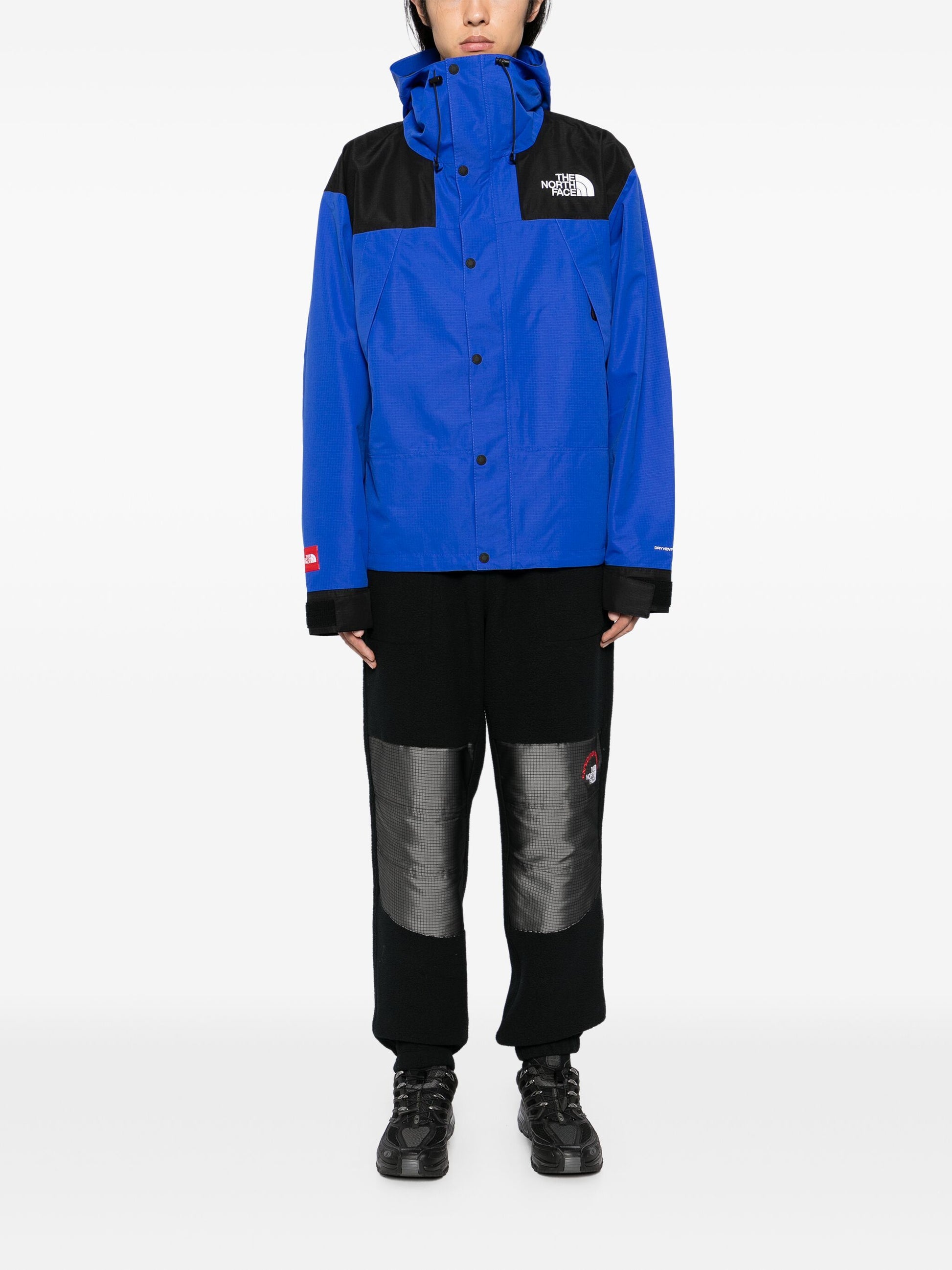 The Dryvent-Mono Mountain Jacket features a sleek black and blue design with a press-stud and zip fastening panel for added comfort. The drawstring hood, embroidered logo, and zip-fastening pockets provide both style and practicality. With long sleeves and magnetic-fastening cuffs, this jacket is suitable for any outdoor adventure.