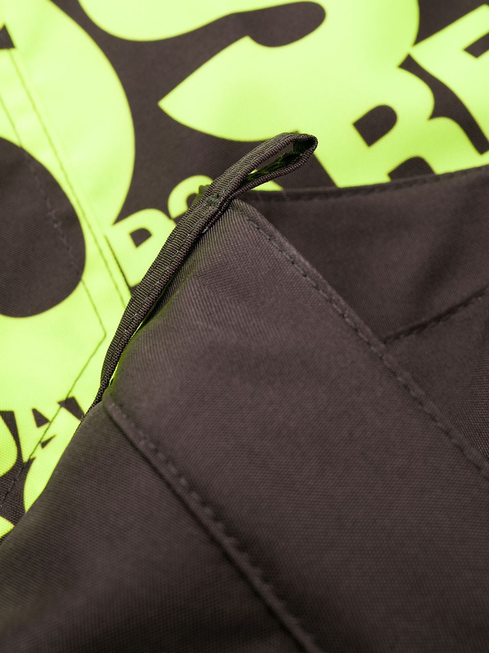 Black/fluorescent green cotton-blend logo-print wide-leg trousers from DSQUARED2 featuring logo print at the leg, belt loops, front button fastening, classic five pockets and wide leg.