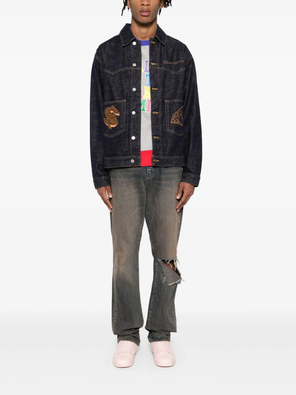 Introducing our luxurious Embroidered Denim Jacket. Crafted from premium indigo blue cotton, this jacket features a front button fastening and exquisite embroidered design. The contrast stitching adds a touch of sophistication to the long sleeves and buttoned cuffs. Elevate your style with this timeless piece, perfect for any occasion.