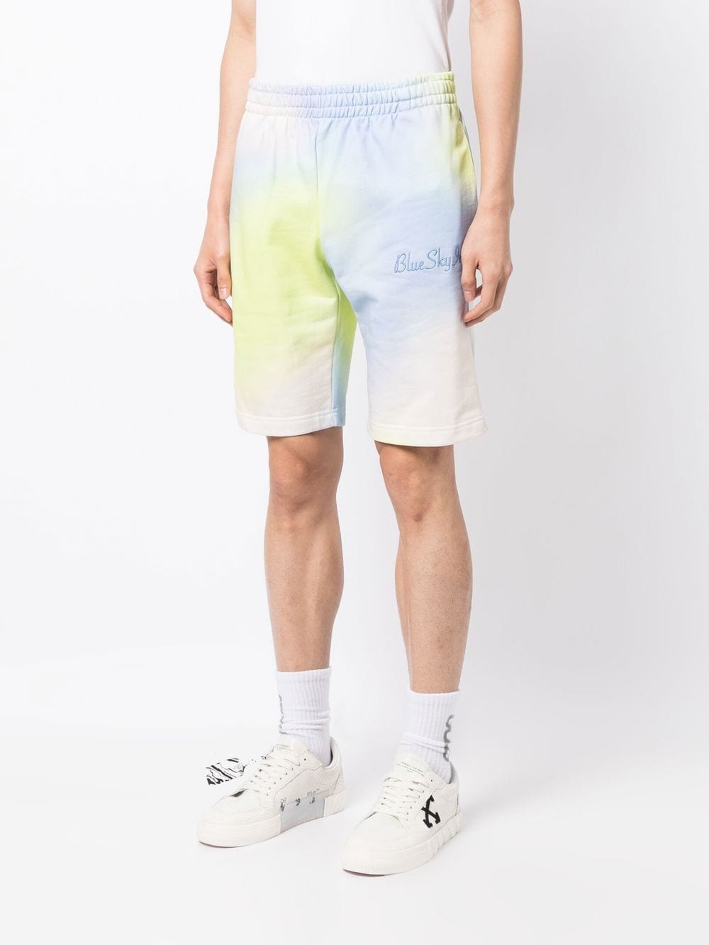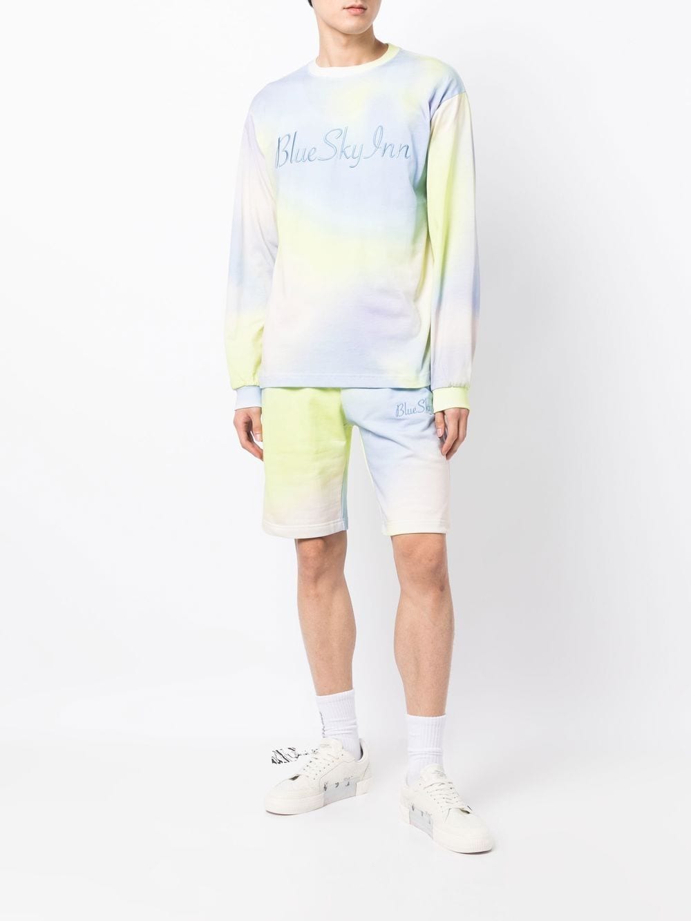 embroidered-logo tie-dye shorts from BLUE SKY INN featuring multicolour, cotton, embroidered logo to the front, tie-dye pattern, elasticated drawstring waistband and above-knee length.