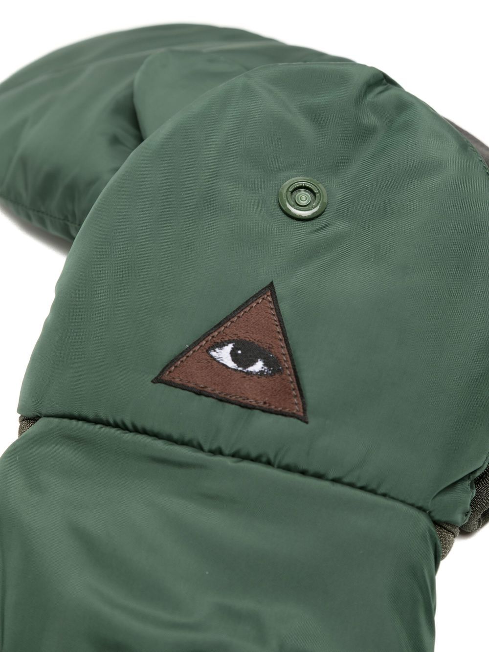 eye patch-detail padded gloves from Undercover featuring green, panelled design, insulated design and logo patch to the front.