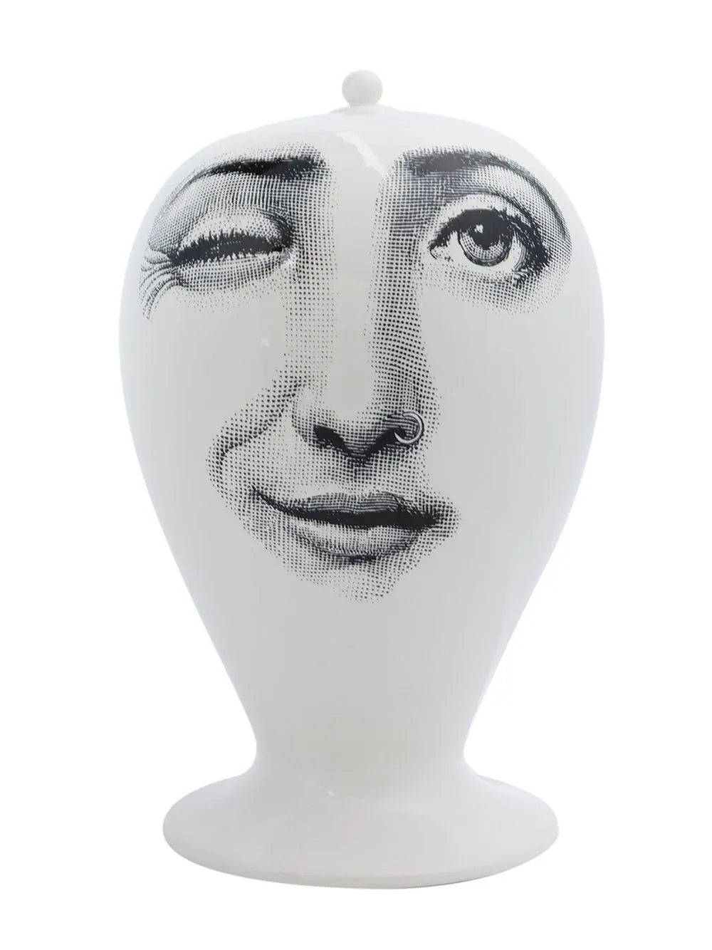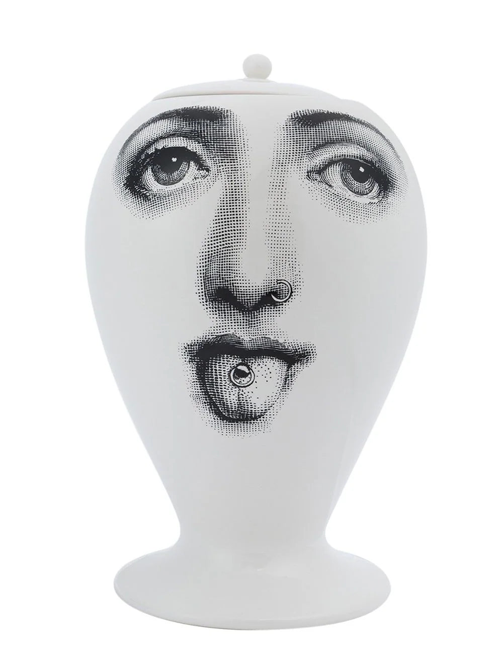 White ceramic face print vase from Fornasetti. This item comes with a gift box.