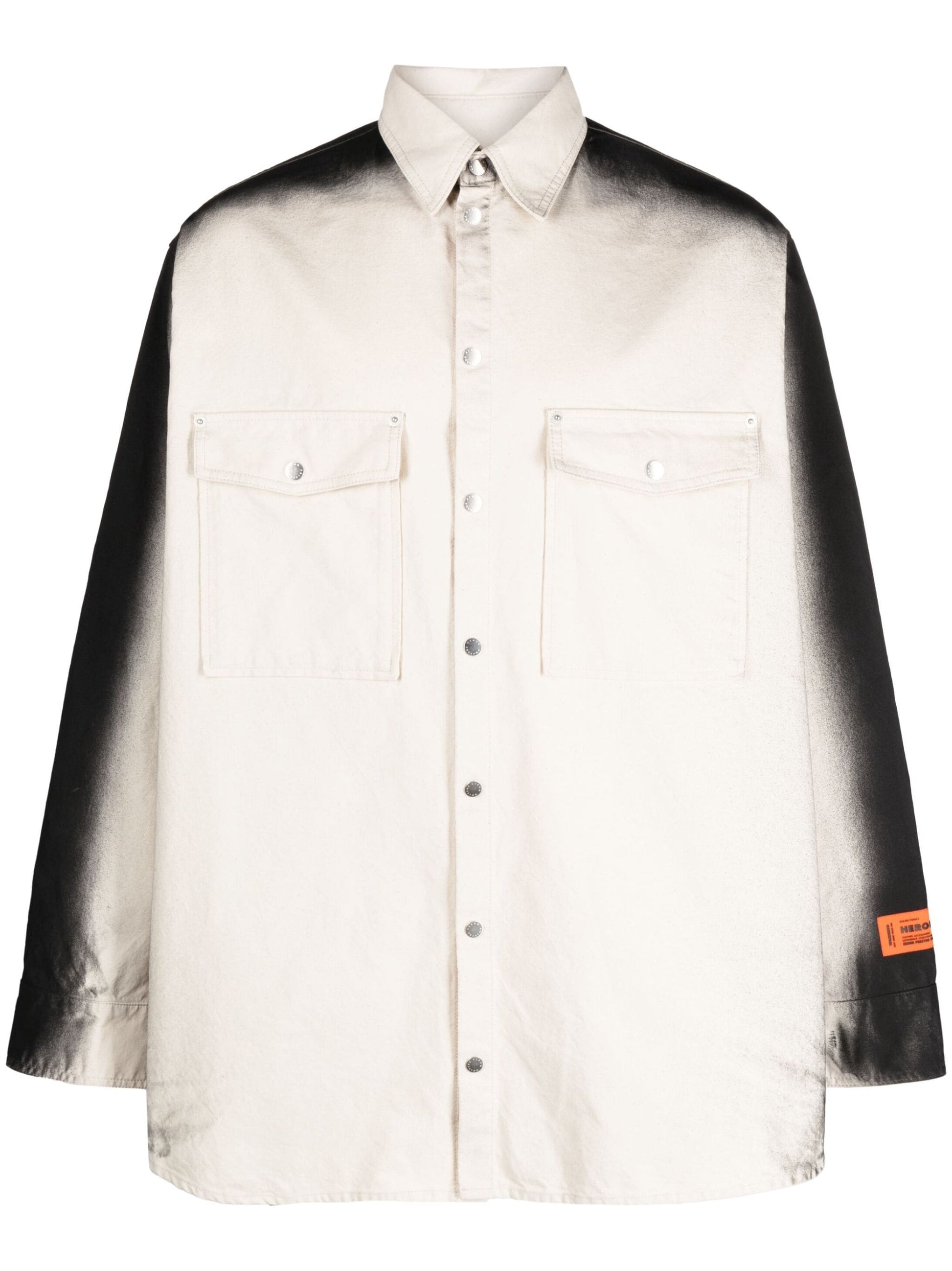 faded-effect logo-patch shirt from HERON PRESTON featuring white/black, cotton, faded effect, logo patch at the sleeve, classic collar, front button fastening, long sleeves, buttoned cuffs and straight hem.