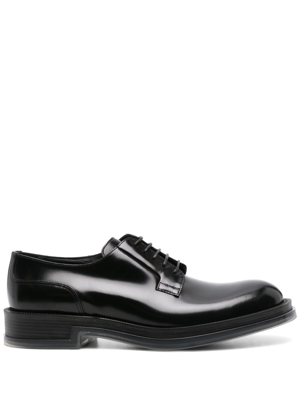 Crafted with premium black calf leather and featuring almond toe front, these Float Leather Derby Shoes are designed for both style and comfort. The stacked sole and transparent rubber sole provide durability, while the leather lining and branded leather insole ensure a luxurious feel. Ideal for any formal or casual occasion.