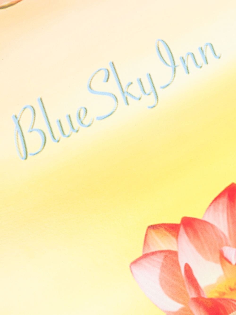 floral-print skateboard from BLUE SKY INN featuring all-over floral print, all-over logo print, curved tips, yellow/pink and wood.