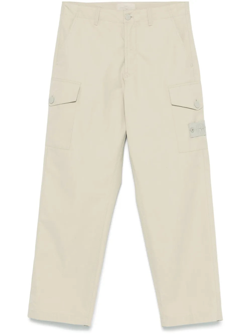 These Ghost Trousers feature a beige concealed fly and button fastening, along with two side slit and cargo pockets, and two rear welt pockets for convenient storage. Made with high-quality craftsmanship, these trousers provide both style and functionality for any occasion.