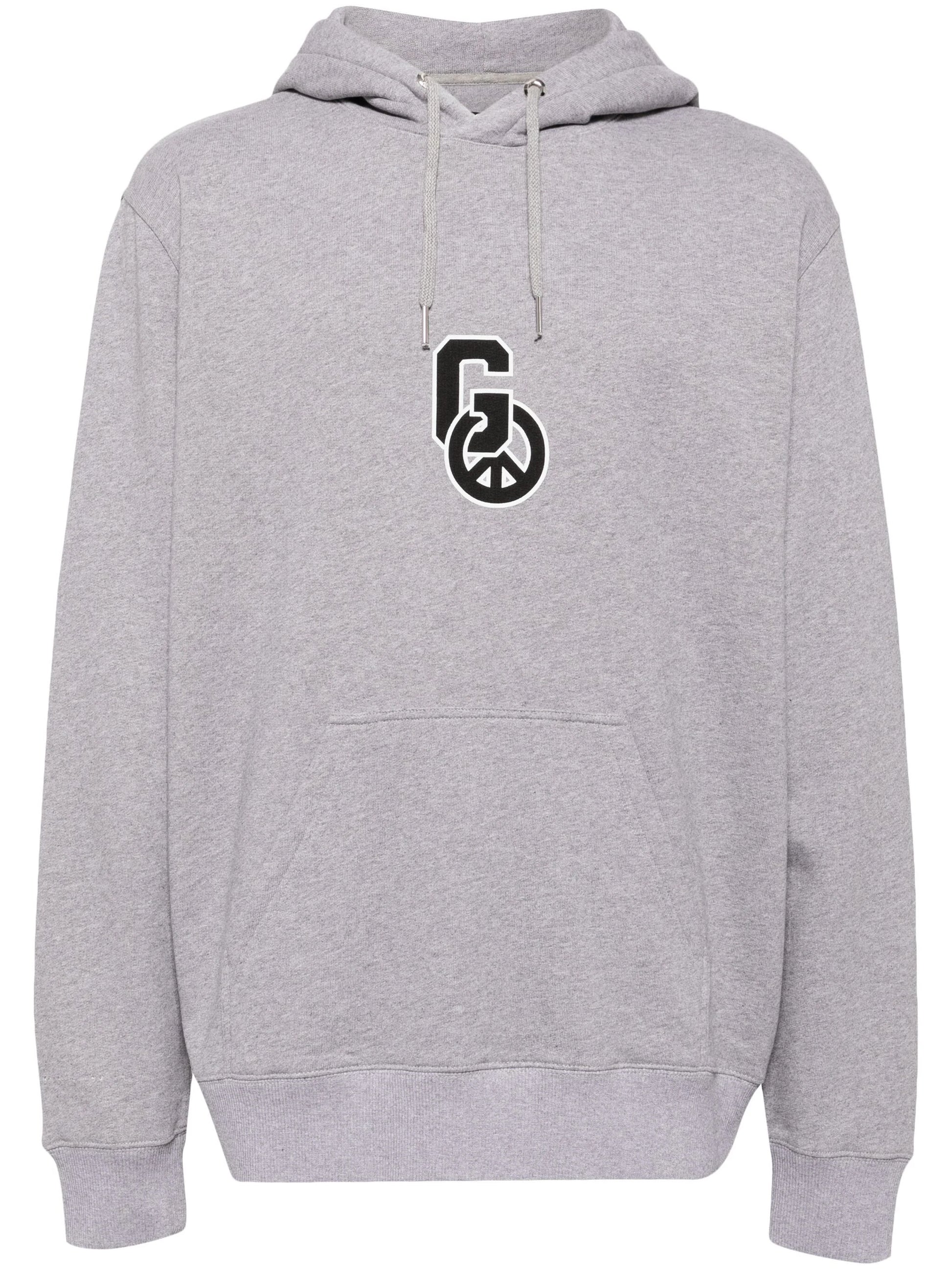 light grey/black cotton jersey texture mélange effect logo print at the chest graphic print to the rear logo print to the rear drawstring hood drop shoulder long sleeves front pouch pocket ribbed trim straight hem