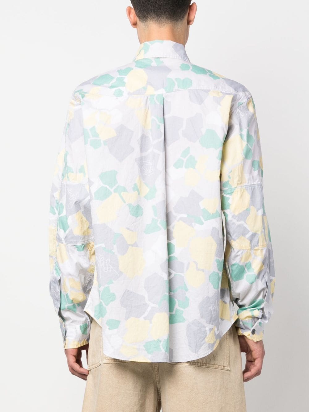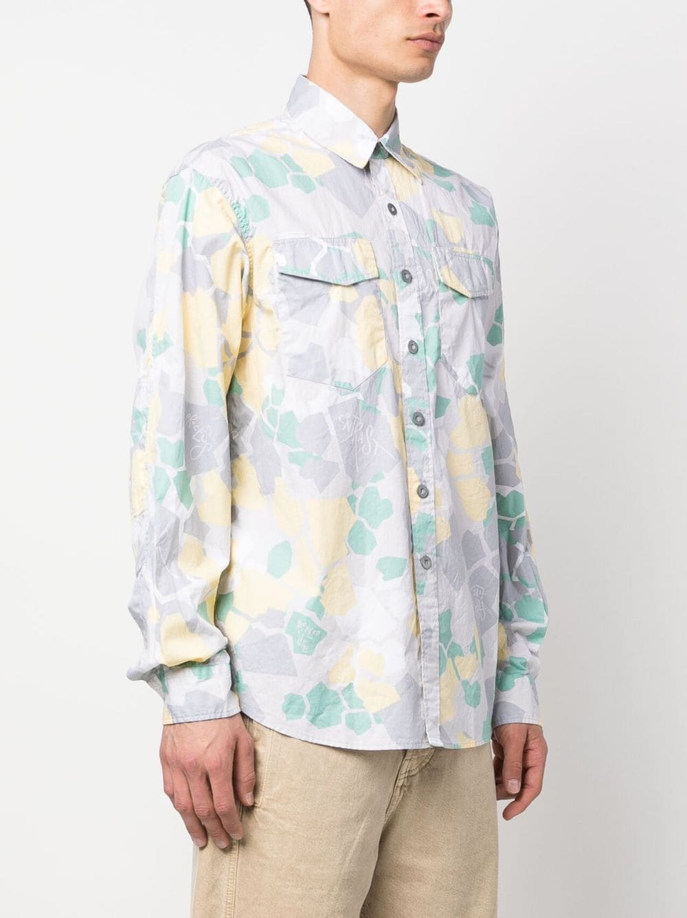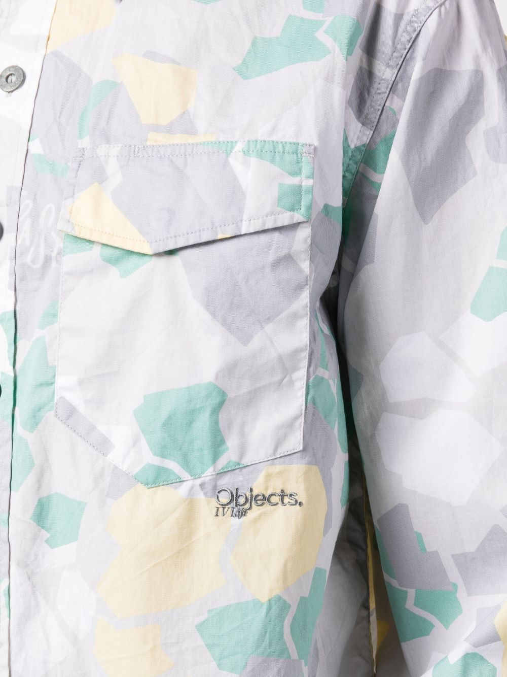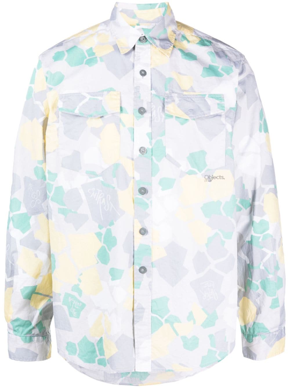 graphic-print long-sleeved shirt from OBJECTS IV LIFE featuring logo print at the chest, two chest flap pockets, ash grey, organic cotton, all-over graphic print, classic collar, front button fastening, long sleeves and straight hem.