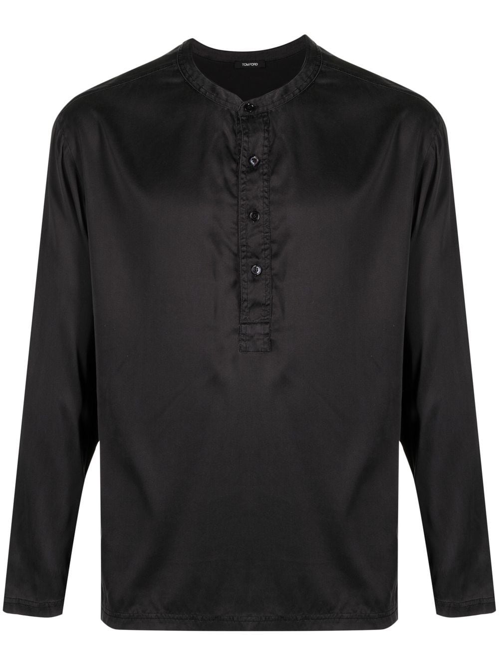half-button silk-blend shirt from TOM FORD featuring black, silk blend, round neck, front button placket and straight hem.