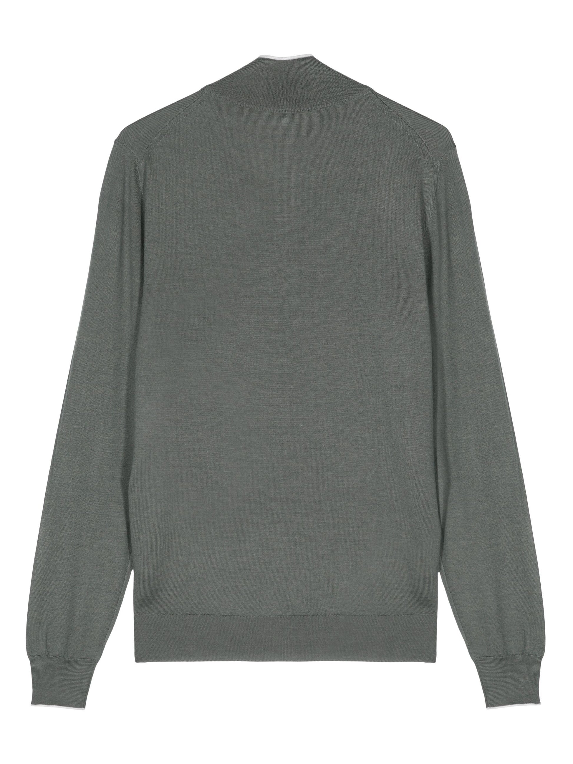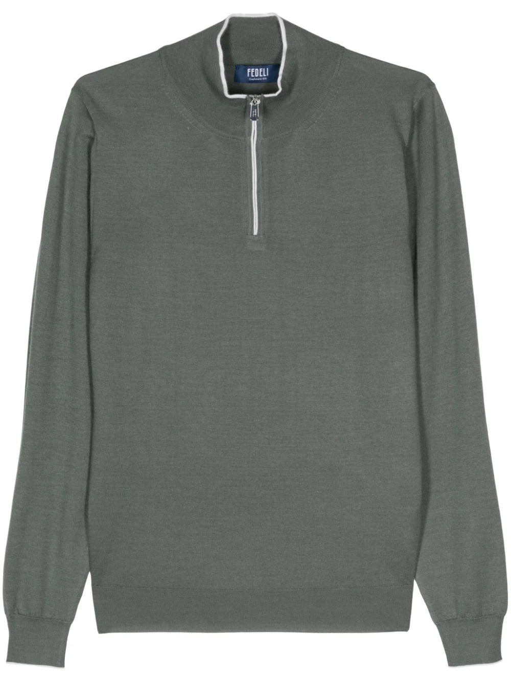 blue cashmere-silk blend high neck half front zip fastening long sleeves ribbed cuffs and hem