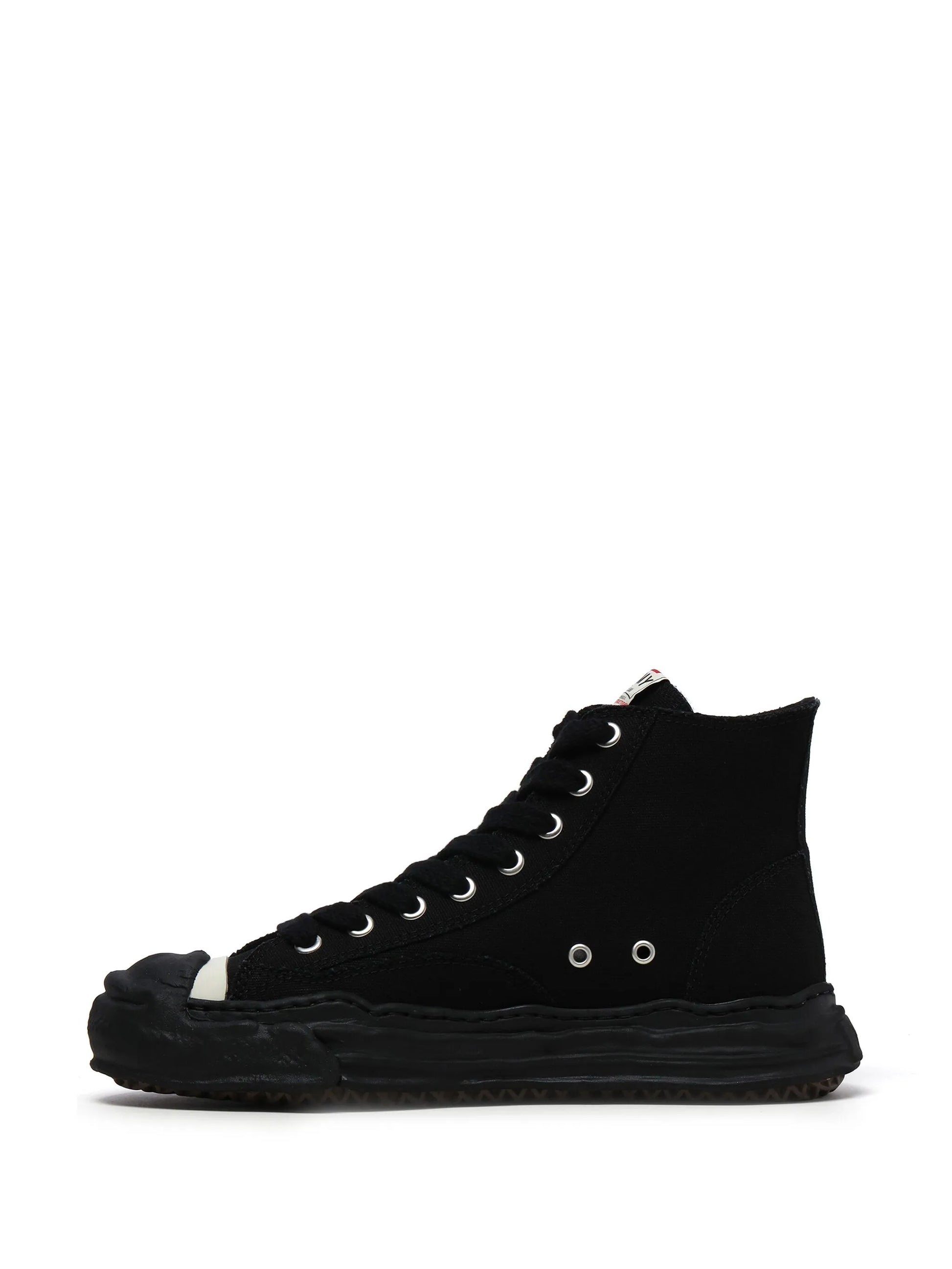 The Hank Og Sole Canvas Sneakers combine a black cotton canvas upper with a distinctive appliqué logo patch on the tongue for subtle branding. Featuring a front lace-up fastening, they provide a customizable and secure fit. The rubber toecap adds durability and protection, while the oversize rubber sole delivers enhanced traction and a modern, statement-making profile. These sneakers offer expert craftsmanship with both style and performance in mind.