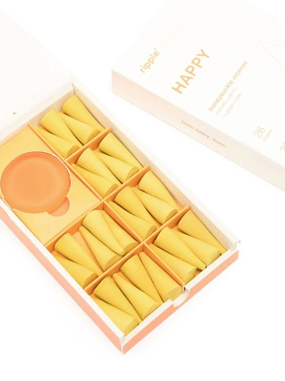 honey yellow manuka/peony low-smoke burn pack of 26 sea glass holder included