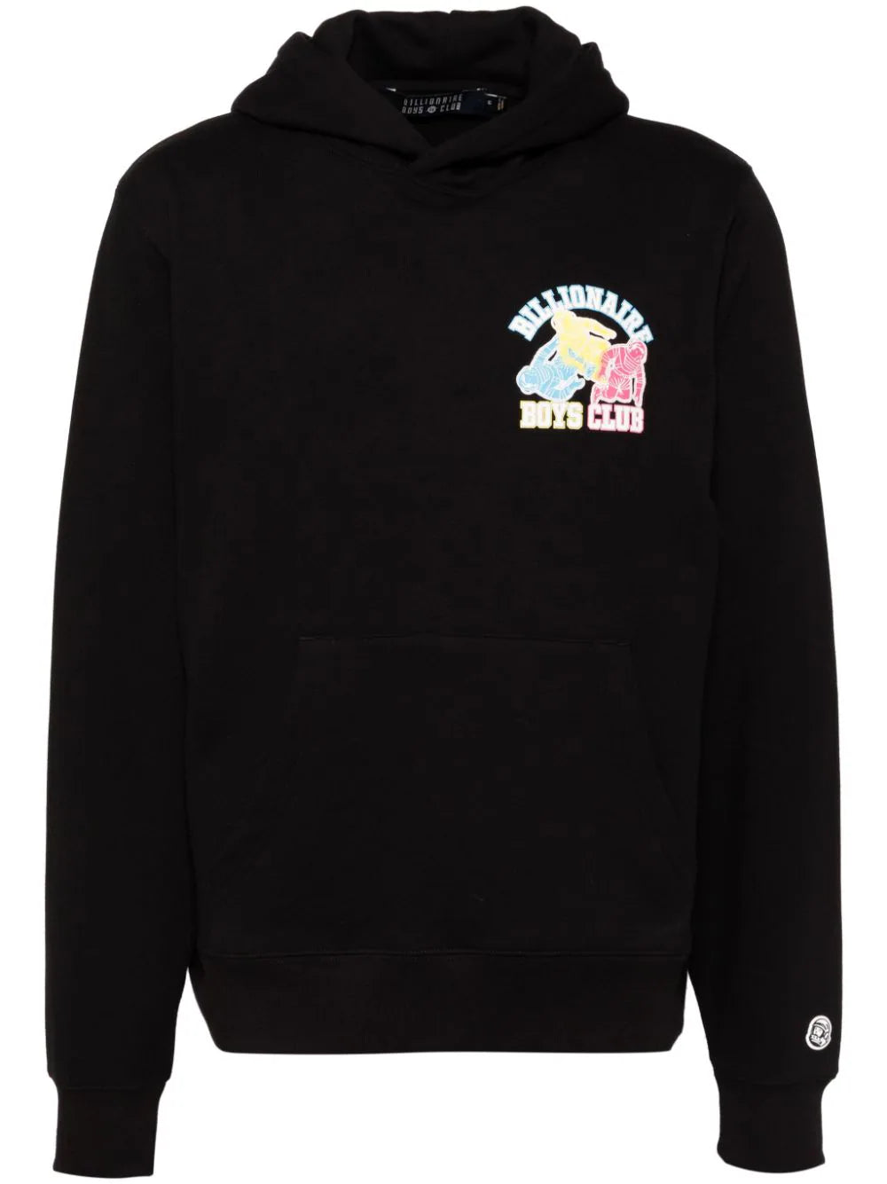Elevate your casual look with our Heart & Mind Popover Hoodie. Made from black cotton jersey for a soft, comfortable fit, this hoodie features a slouchy hood and front pouch pocket. The stylish logo print at the chest, sleeve, and back add a touch of luxury. Stay warm and fashionable with ribbed cuffs and hem.
