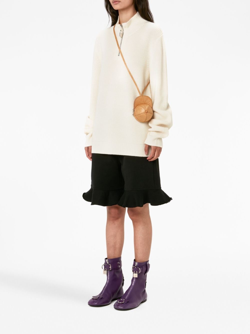 Henley high-neck jumper from JW Anderson featuring off-white, merino wool, knitted construction, high neck, half front zip fastening, padlock detail, long sleeves and ribbed cuffs and hem.