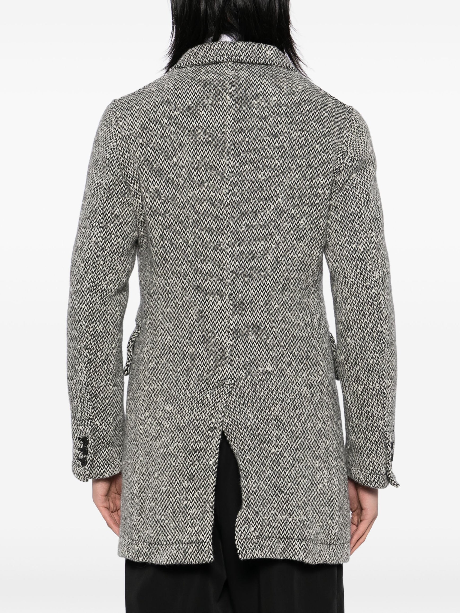 Crafted with a timeless herringbone tweed and a sleek single-breasted design, this coat exudes sophistication. Featuring a grey front button fastening, chest welt pocket, and two front flap pockets, it offers both style and functionality. Completed with an American rear vent, this coat is perfect for staying warm and fashionable in any setting.