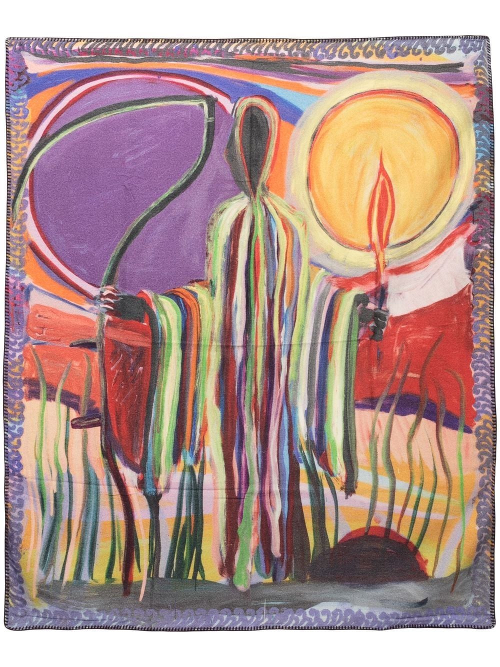 illustration-print wool blanket from GIVENCHY featuring multicolour, wool-silk blend, illustration-style print and whipstitch trim.