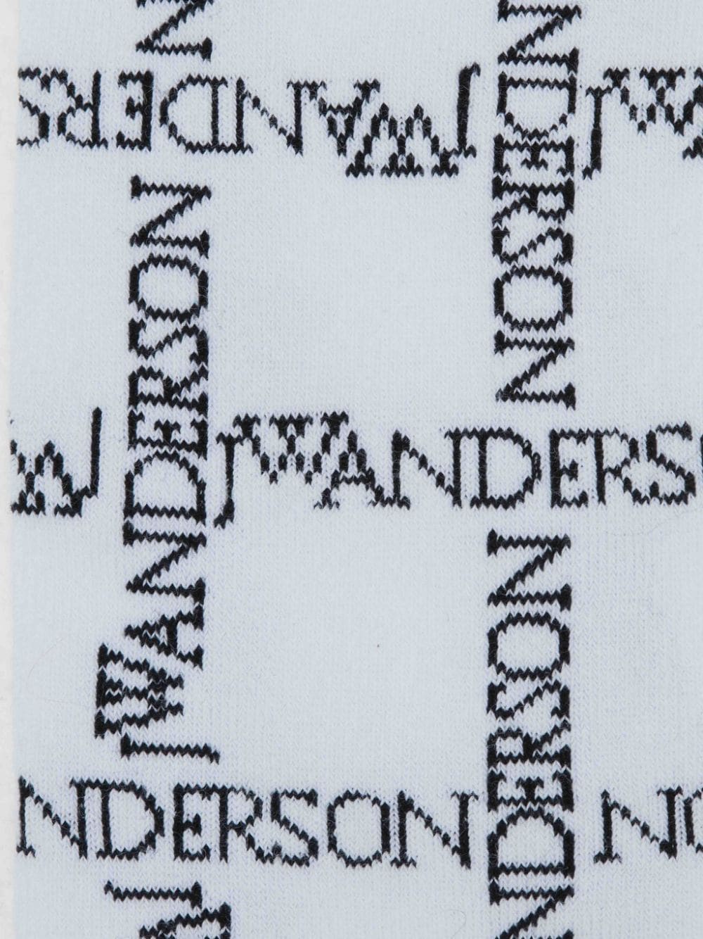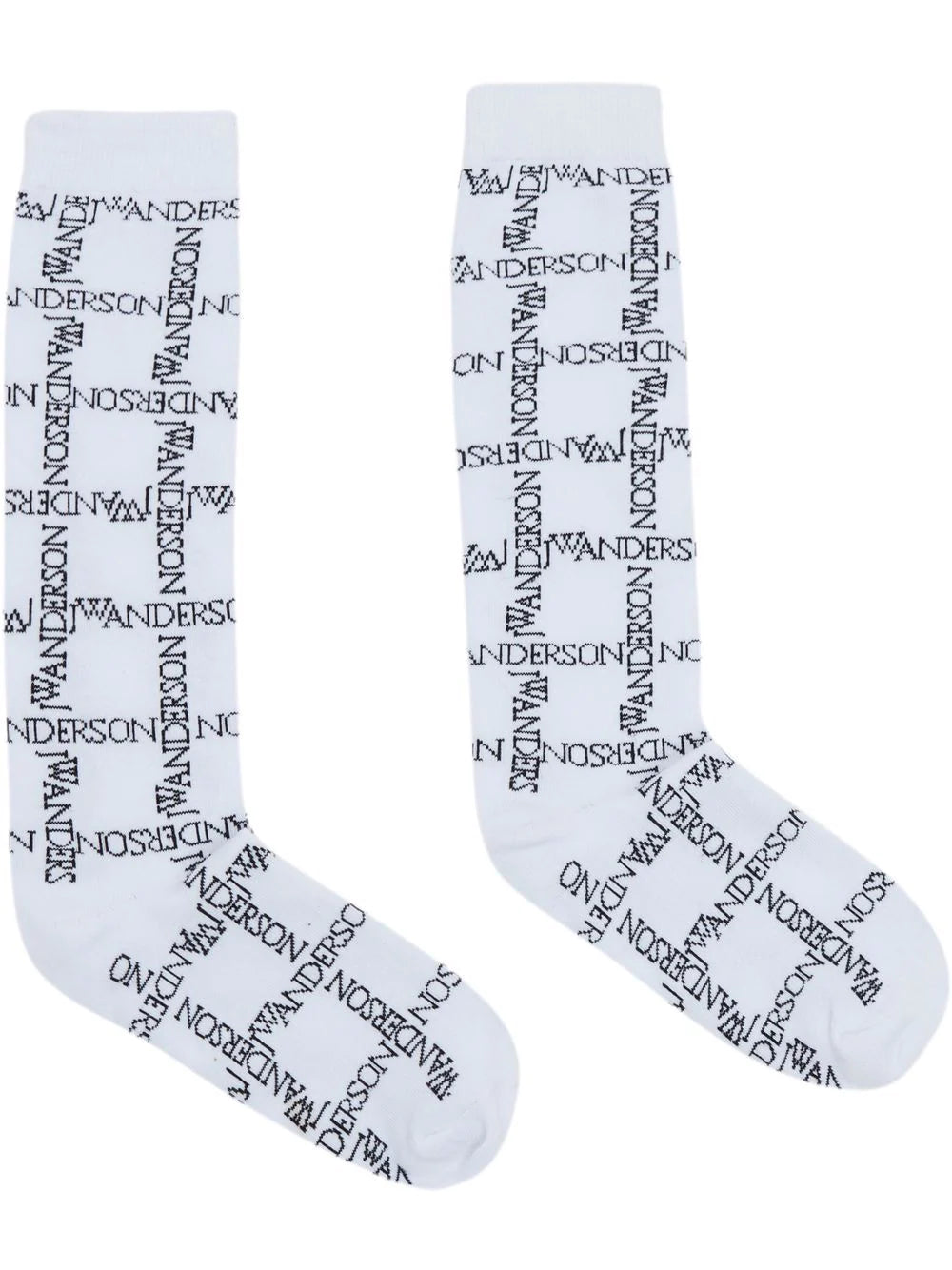 White/black cotton blend intarsia-logo long ankle socks from JW Anderson featuring jersey knit, intarsia-knit logo, elasticated ankles, above ankle length and pull-on style.