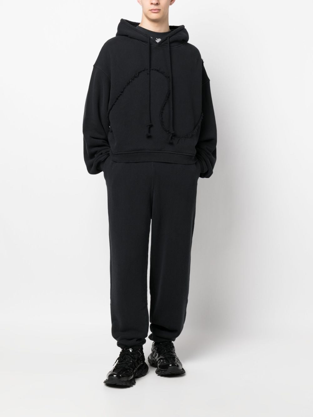 jersey-fleece cotton track pants from ERL featuring black, cotton, jersey fleece, logo patch to the rear, elasticated waistband, straight leg, two side inset pockets and elasticated ankles.