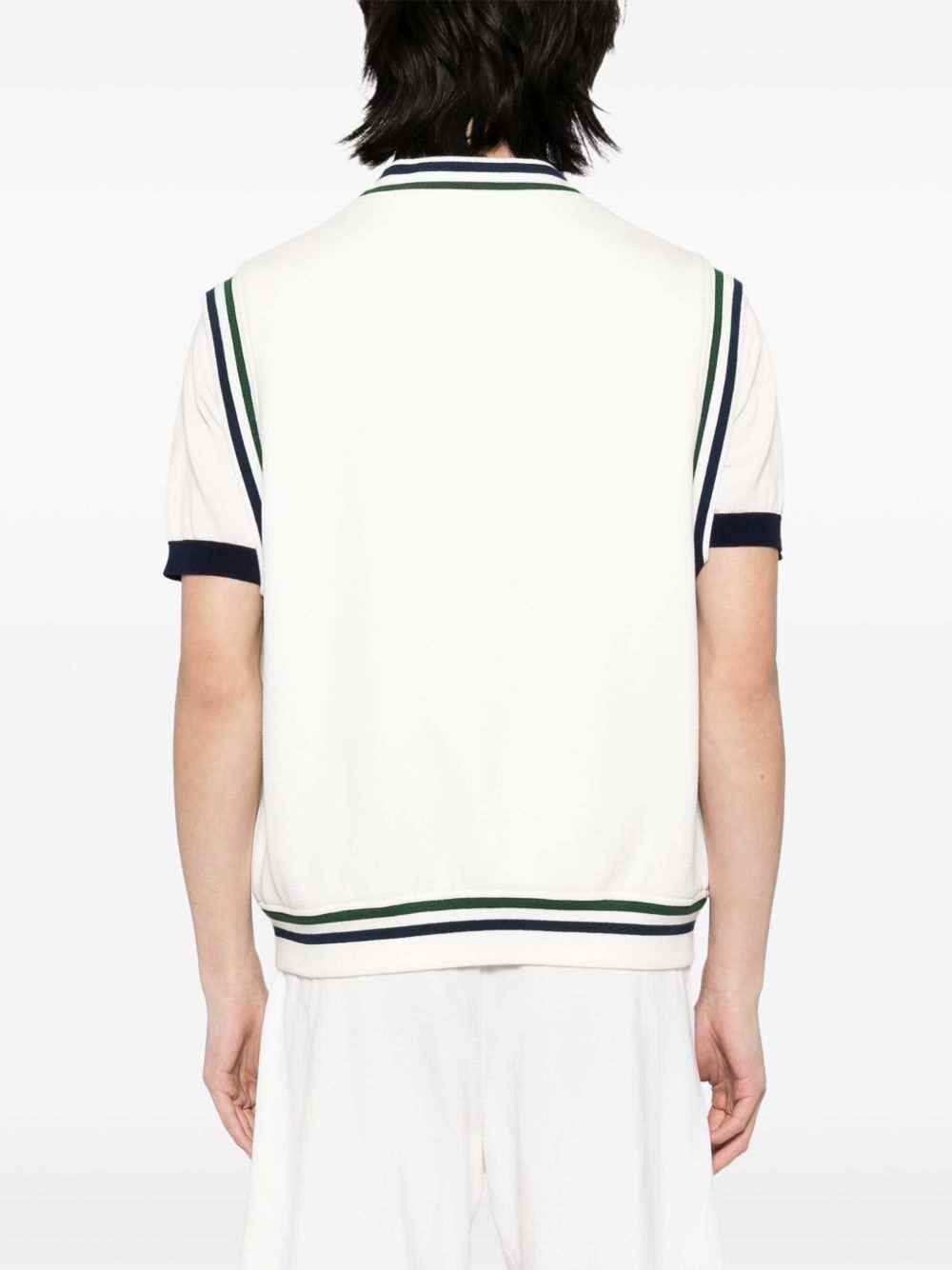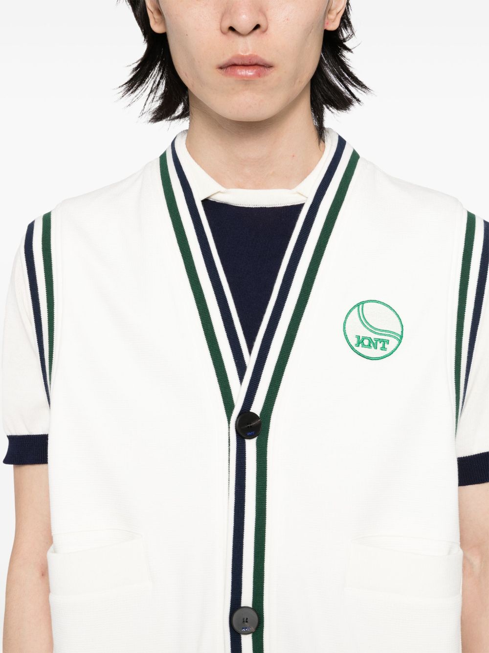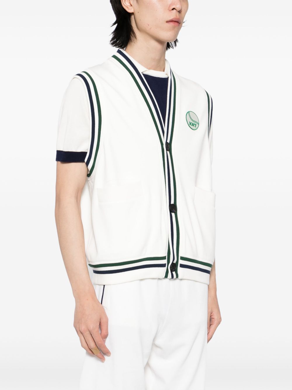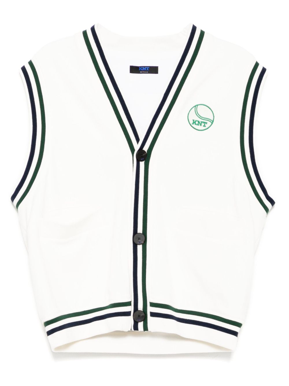 The Knt Vest features a white front button fastening and two front patch pockets for added functionality. With its sleeveless design, it offers a comfortable and versatile option for any outfit. Stay on-trend and effortlessly stylish with the Knt Vest.