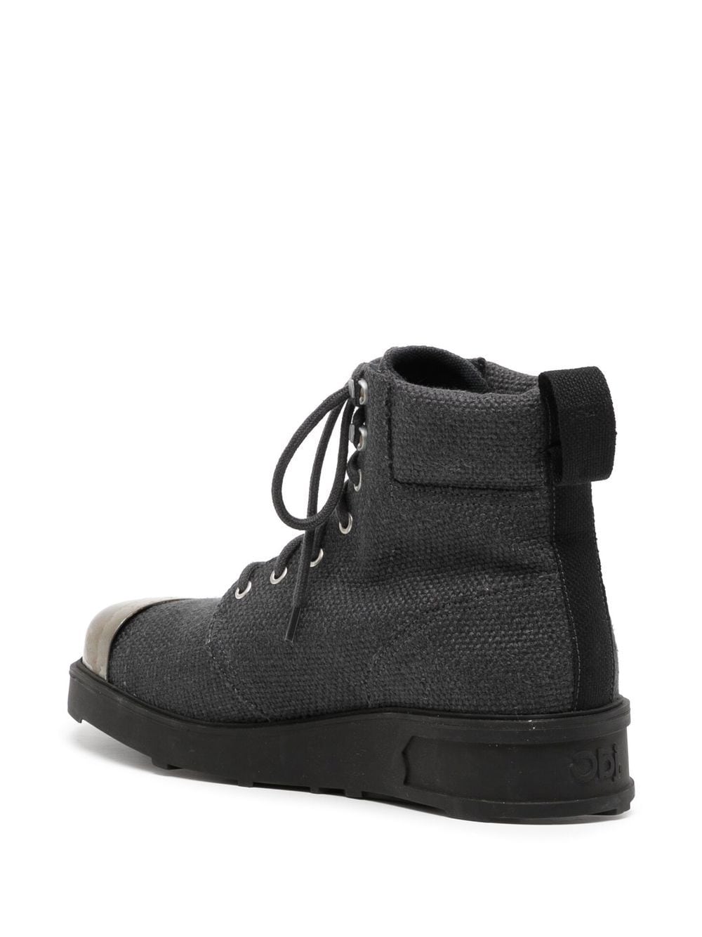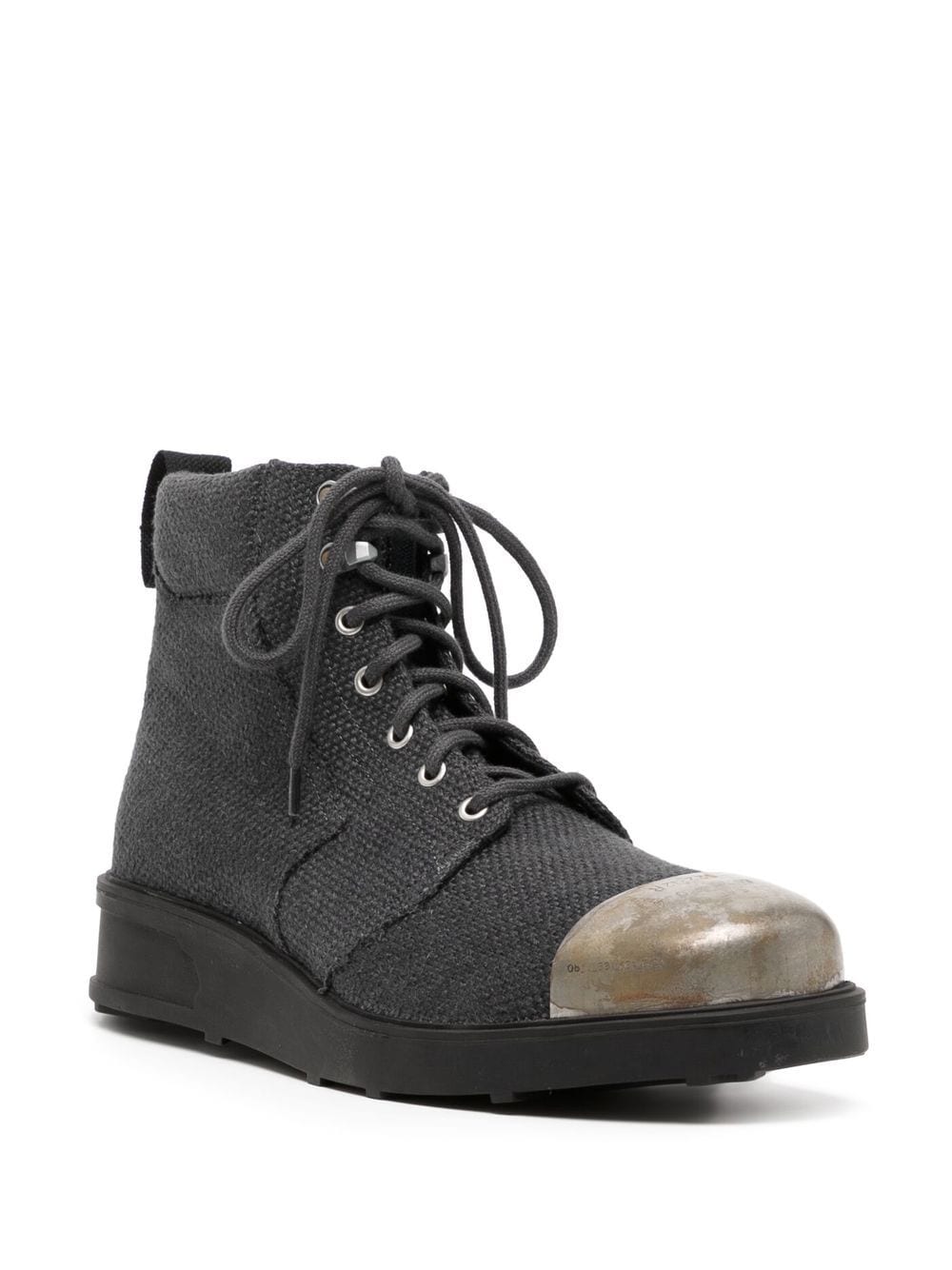 lace-up ankle boots from OBJECTS IV LIFE featuring anthracite grey, cotton, linen/flax, contrasting toecap, front lace-up fastening, ankle-length and flat rubber sole.