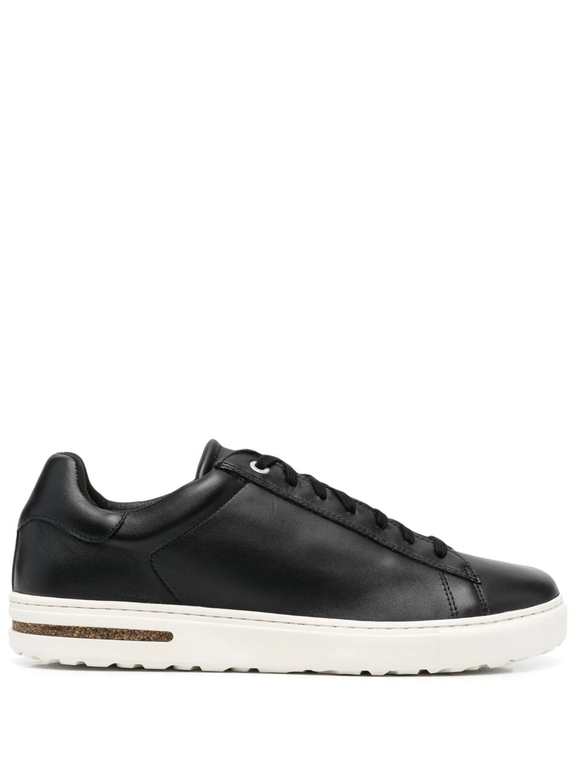 lace-up leather sneakers from BIRKENSTOCK featuring black, leather, round toe, stripe detailing, front lace-up fastening and flat rubber sole.