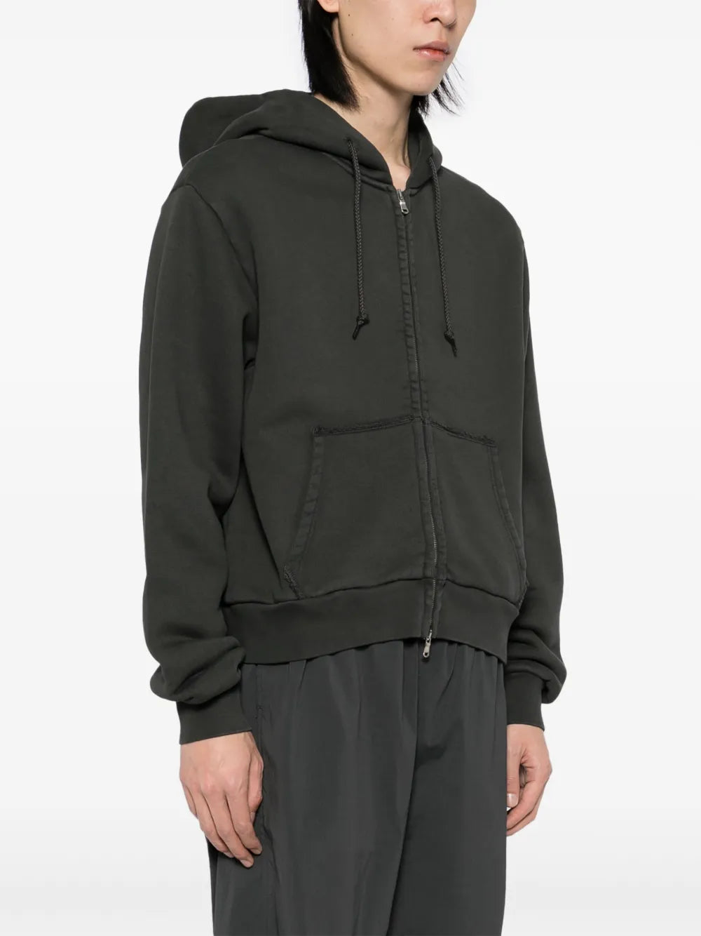 The Lave Hoodie is a stylish and practical choice for any wardrobe. Its charcoal grey color and sleek two-way zip fastening give it a modern look, while the drawstring hood and pouch pockets provide comfort and convenience. Perfect for any occasion, this versatile hoodie is a must-have for any fashion-forward individual.